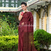 Matka sarees can be found in bright hues and light shades. For example, vibrant colours like maroon, royal blue, and emerald green are eye-popping, while beige, grey and off-white give you a sophisticated yet casual everyday look. The thickness of a matka saree allows it to hold its pleats properly throughout the day and keeps the saree in place.