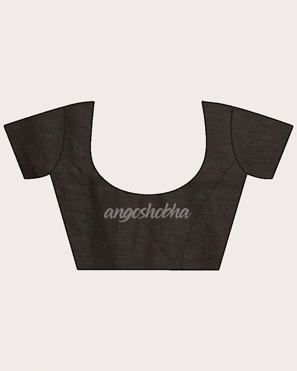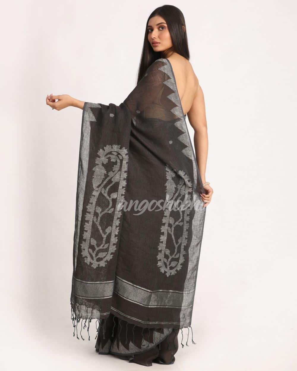 Dark Grey Brown Traditional Handloom Linen Jamdani Saree