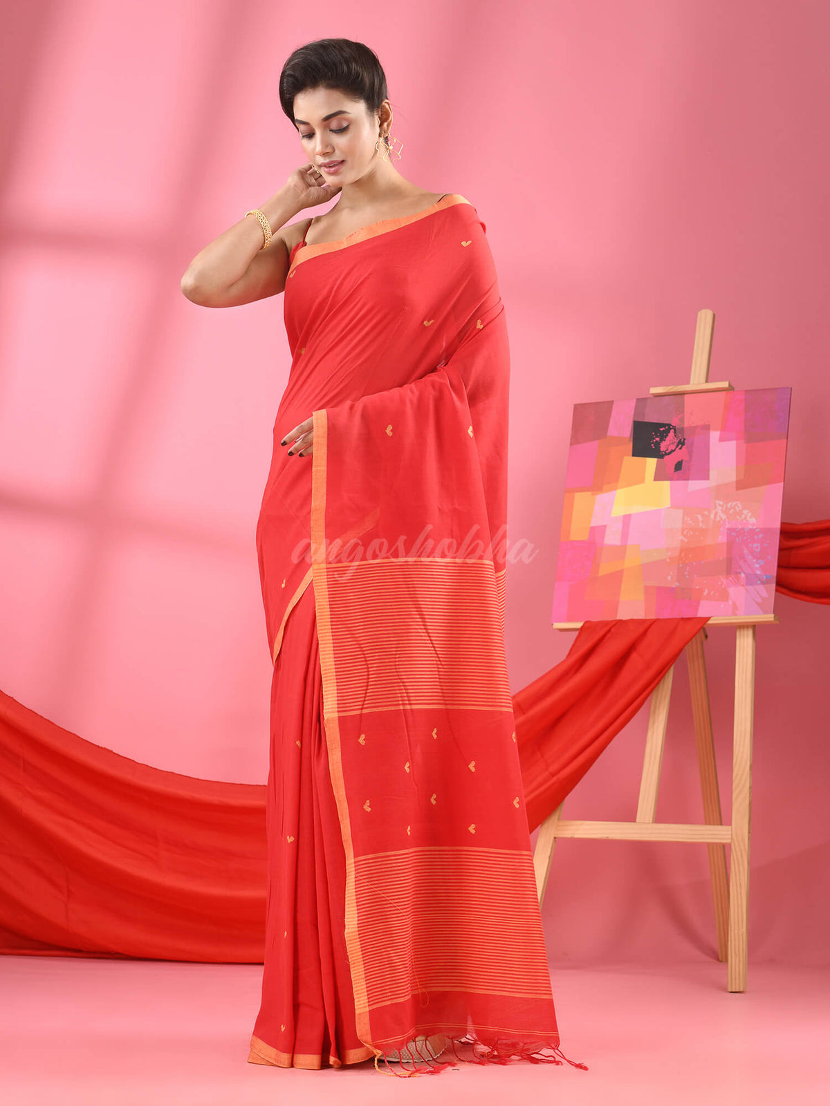 Red Cotton All Body Love Buti Handloom Saree
