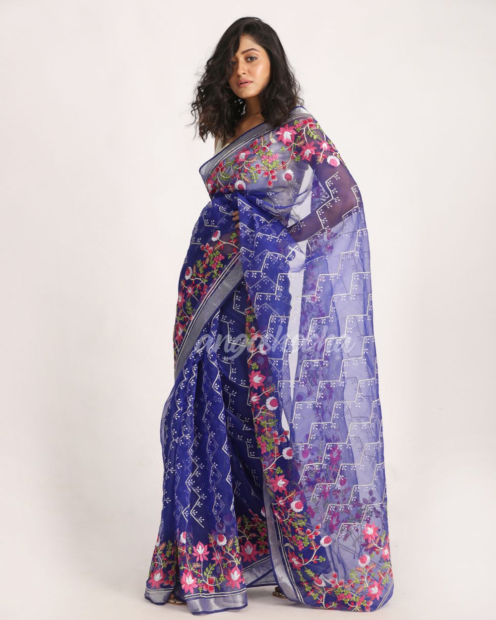 Royal Blue Art Silk Muslin Handloom Embroidery Saree