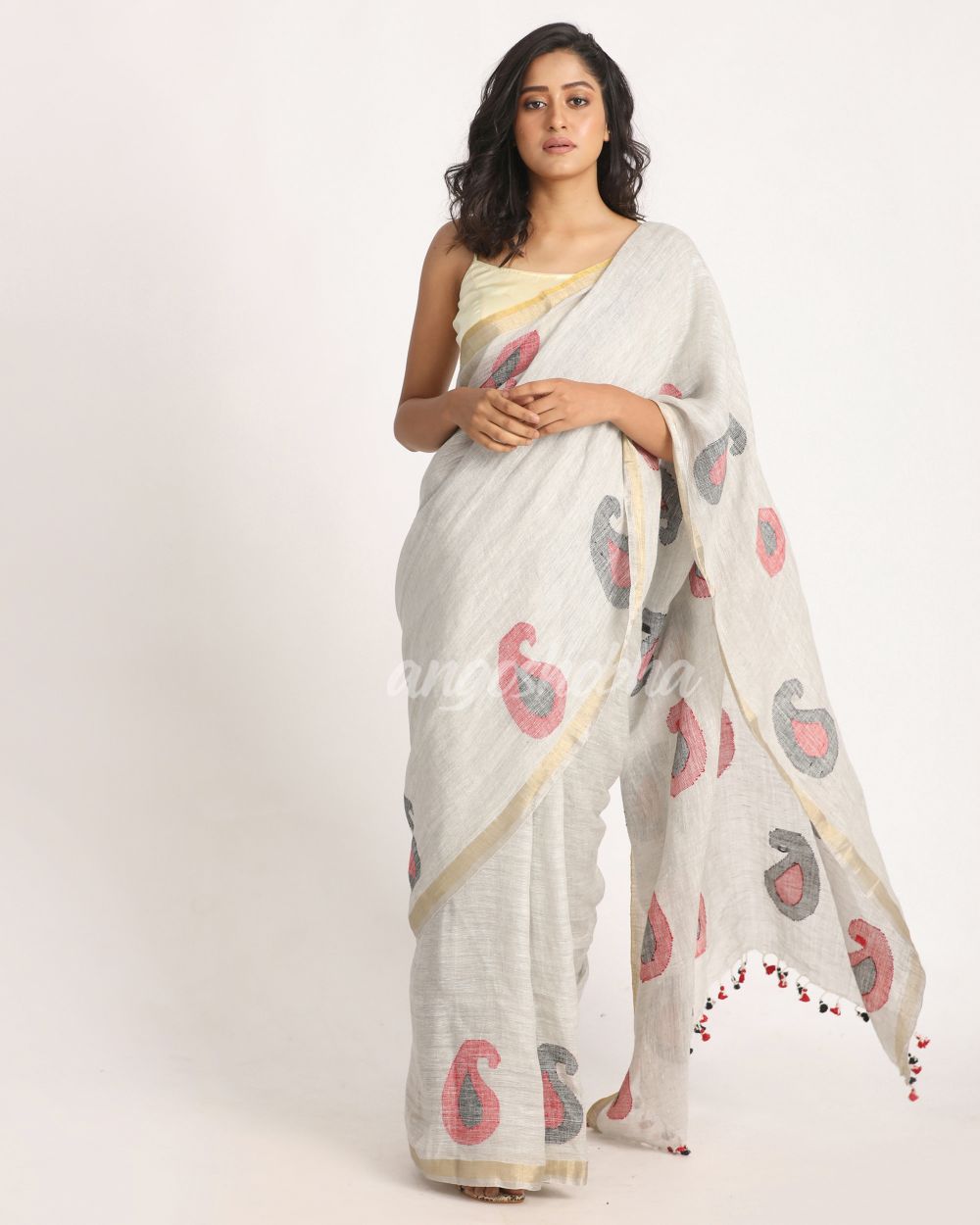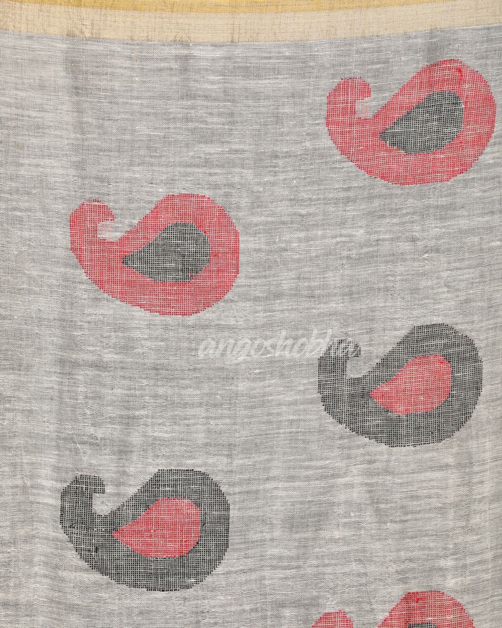 Silver GreyTraditional Handloom Linen Jamdani Saree