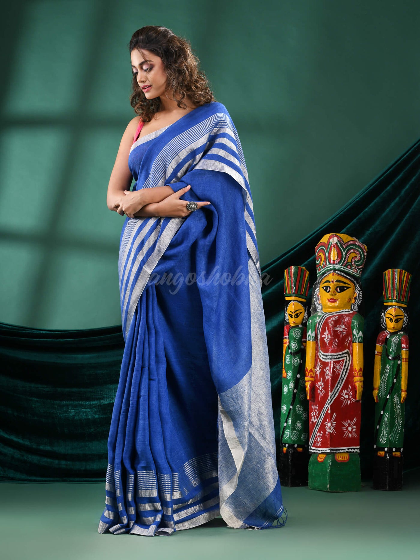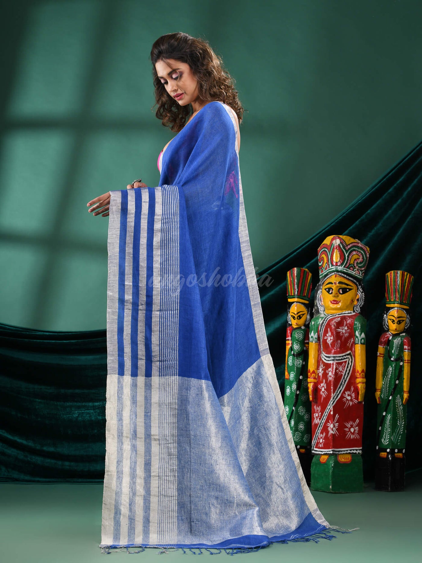 Blue Linen Handloom Saree