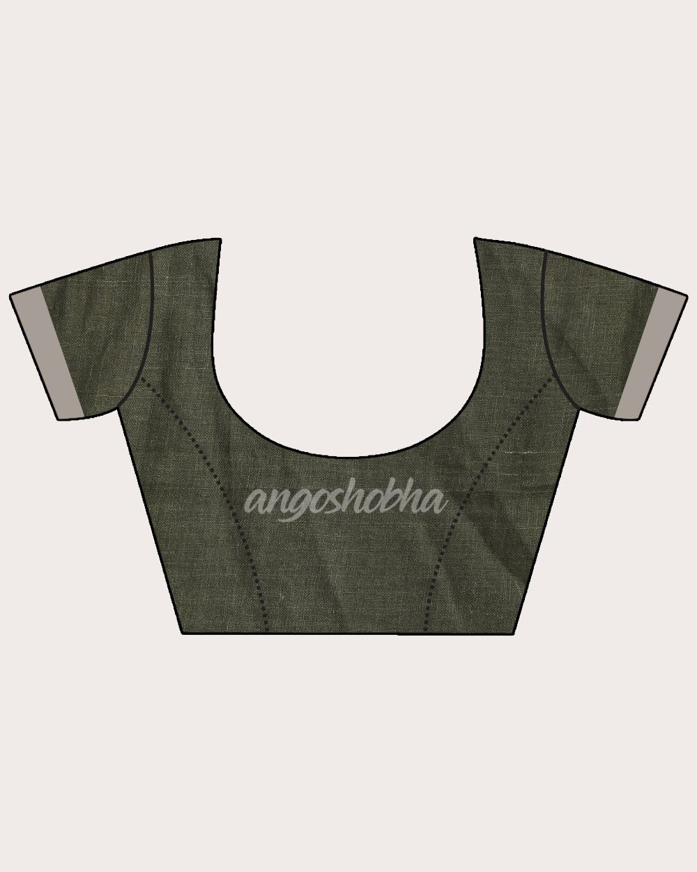 Dark Moss Green Traditional Check Linen Handloom Saree