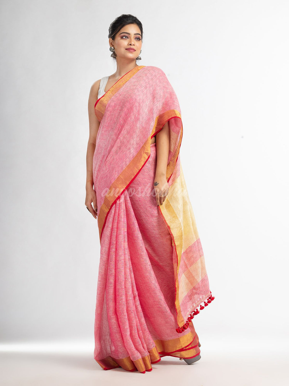 Red all body jacquard weaving gold zari pallu with gold zari border handwoven linen saree