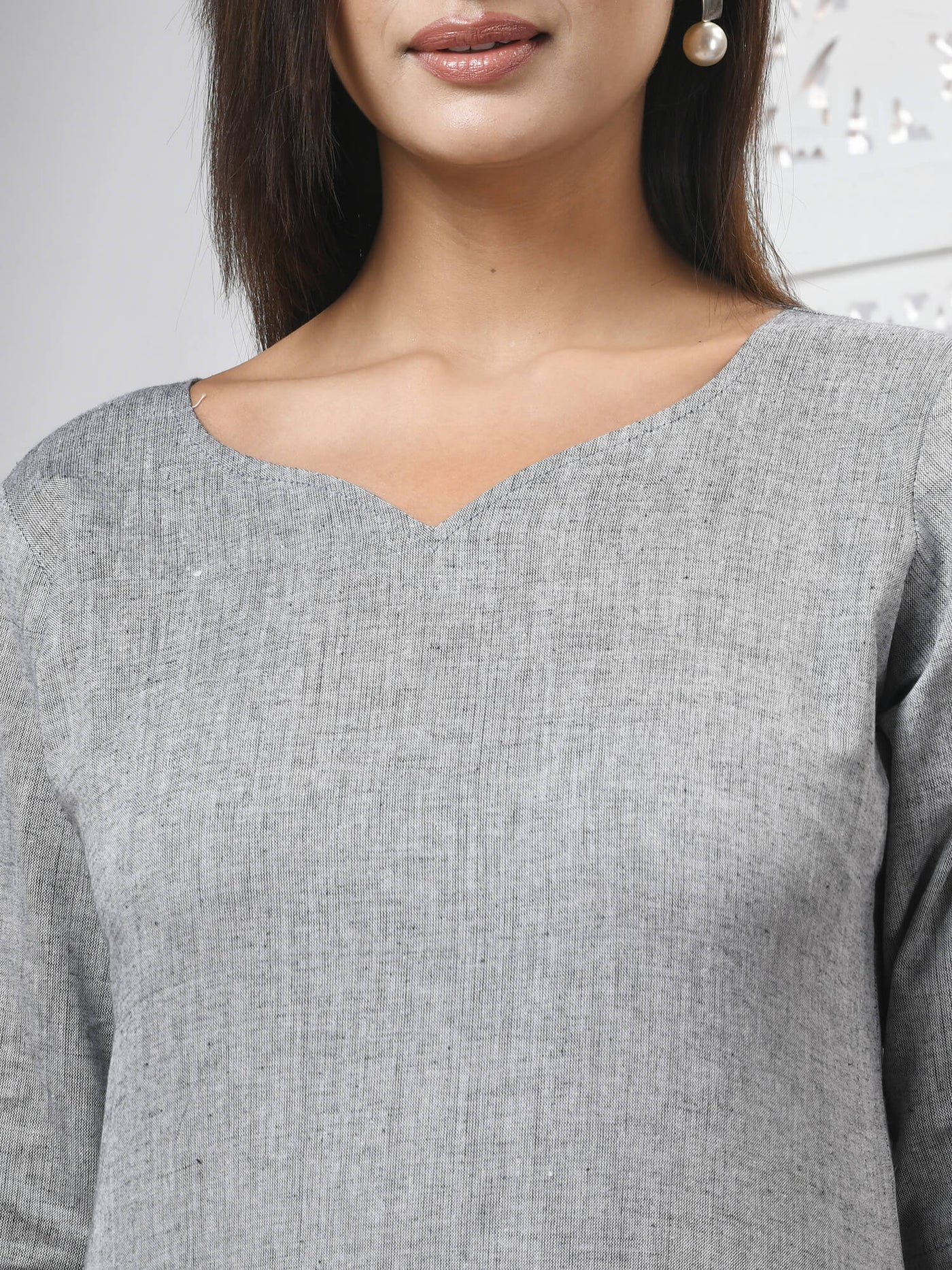 Grey Cotton Bengal Handwoven Kurti