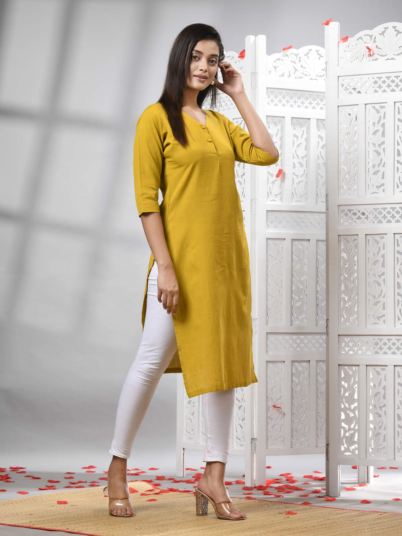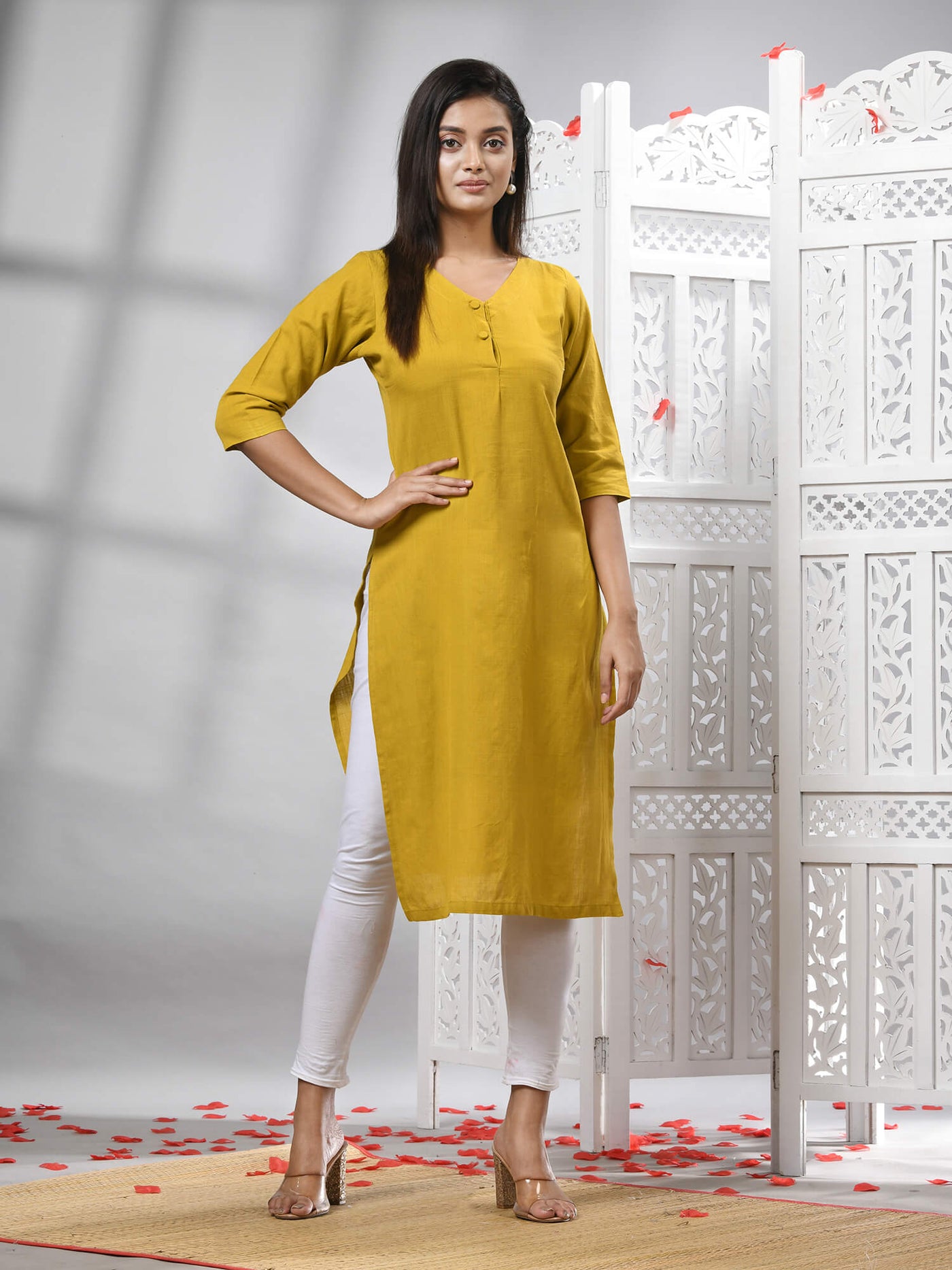Mustard Cotton Bengal Handwoven Kurti