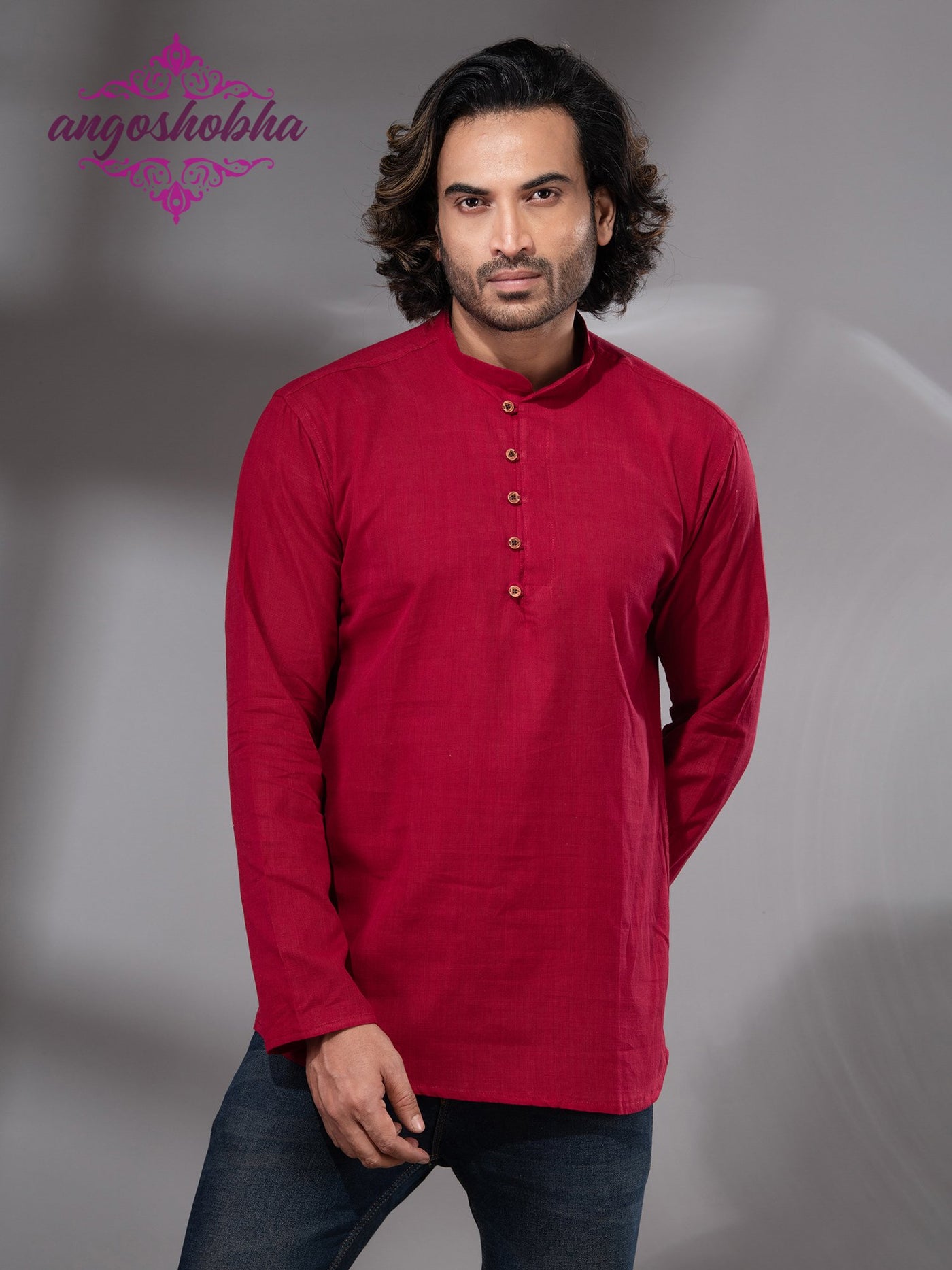 Red Cotton Men's Kurta