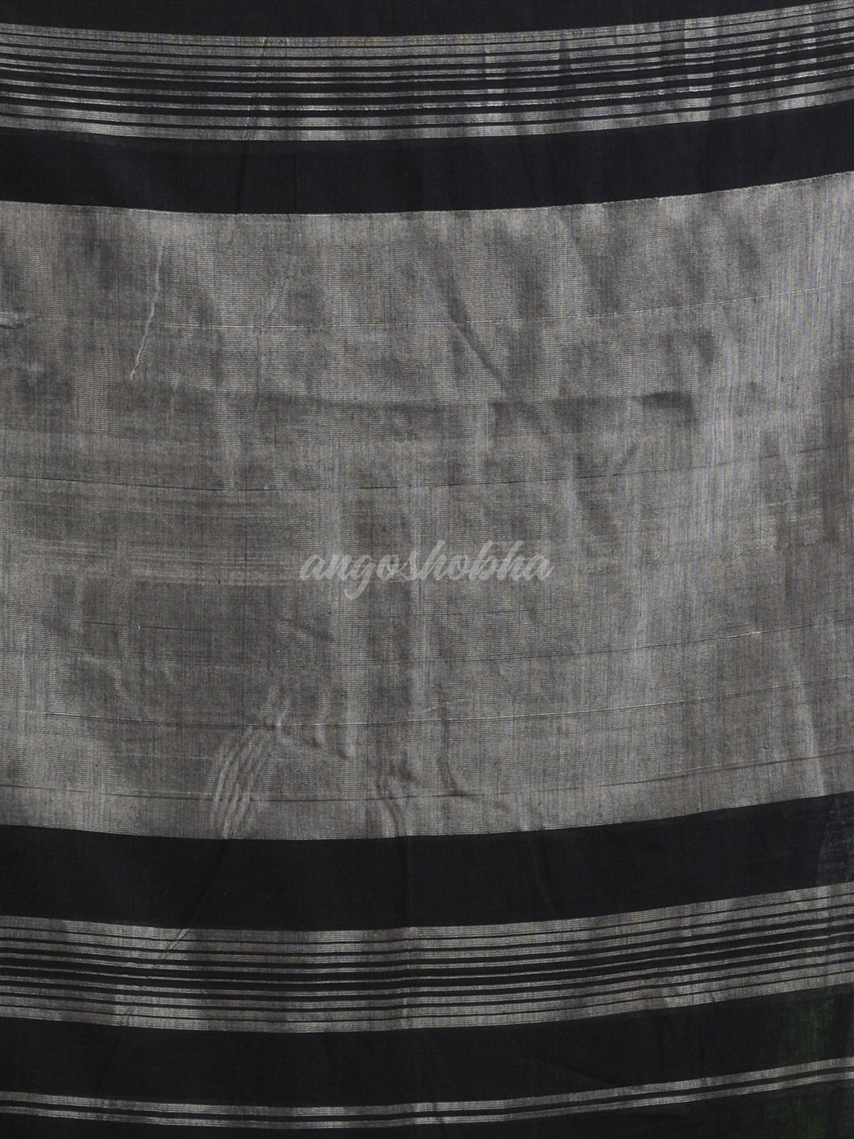 Description: Accentuate your ethnic ensemble by wearing this saree from Angoshobha. Sarees have their own grace, specially this one.This saree from Angoshobha is a beautiful black handloom saree .With silver zari temple border and pallu silver zari colour ,& Black and White colour pompom added The hem of the saree is disguised with Black  colour plain design. Style of it with minimal jewellery and high heels to slay the ethnic look.You can wear anywhern and Crafted in a cotton fabric, this beauty gives the most comfortable and any festival moment with wonderful enjoyment.So collect this product and enjoy with wearing cotton saree. Obviously you can trust on this collection. We are always with your fashion and choice