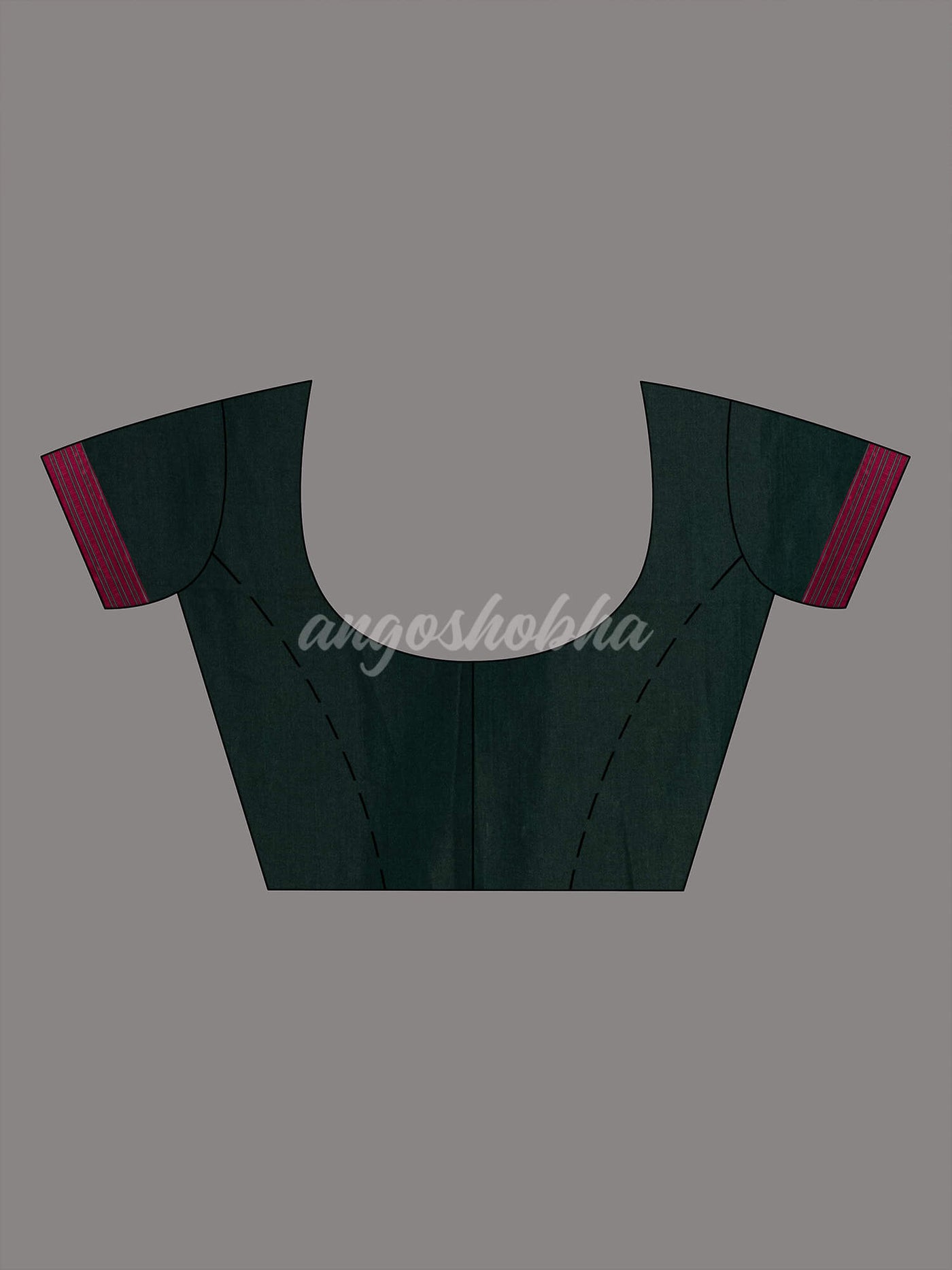 Description: Accentuate your ethnic ensemble by wearing this saree from Angoshobha. Sarees have their own grace, specially this one. This saree from Angoshobha is a beautiful Bottle green cotton jamdani saree . The saree all body motif .with mahapar added strip border.with jacquard work kolka design in pallu. and attach Bottle Green colour blouse piece. Crafted in a cotton fabric, this beauty gives the most comfortable fit. Style of it with minimal jewellery and high heels to slay the ethnic look. You can wear anywhere and any festival moment with wonderful enjoyment. So collect this product and enjoy with wearing cotton saree. Obviously you can trust on this collection. We are always with your fashion and choice.