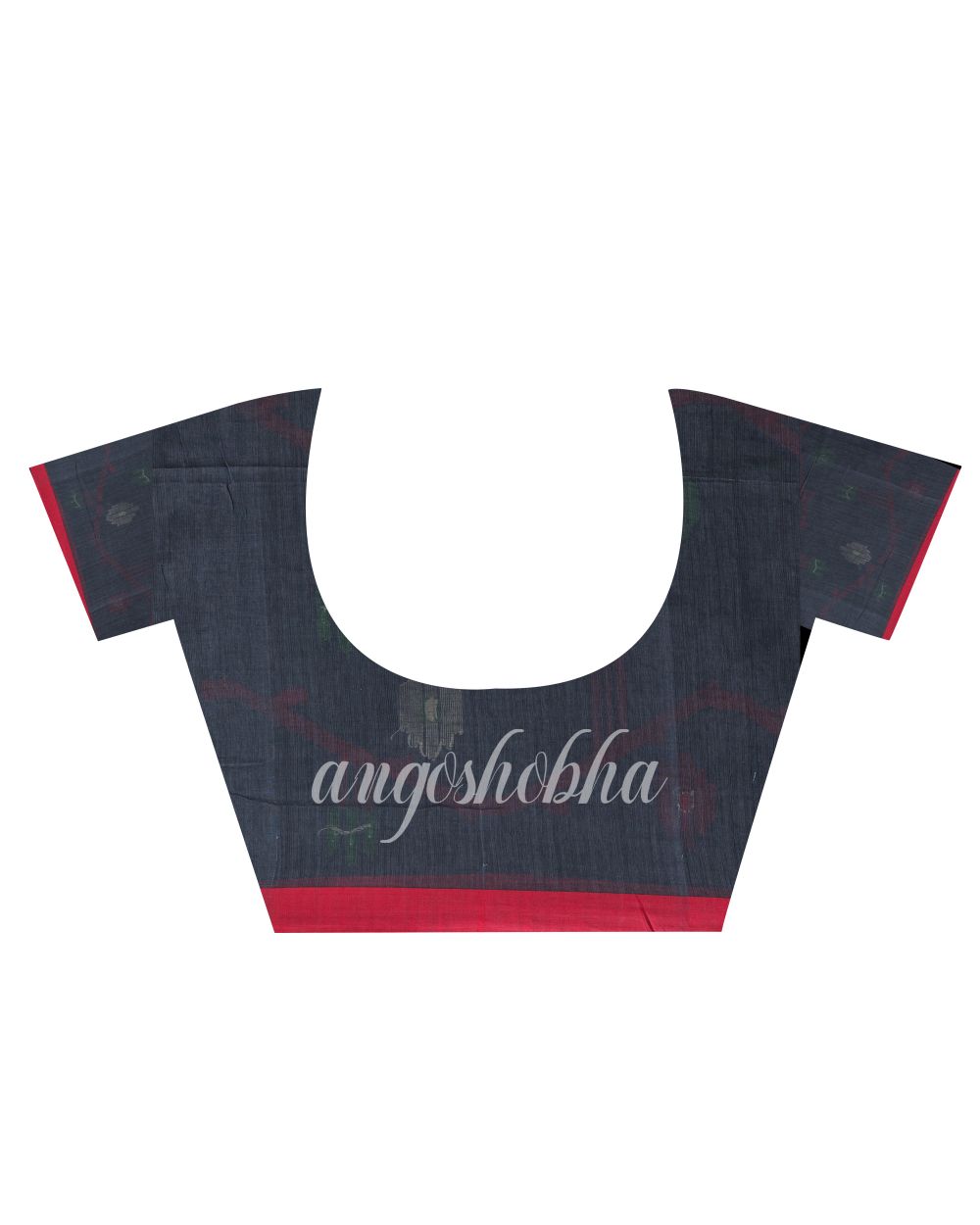 DESCRIPTION: Add a vibrant burst of color to your wardrobe with the enchanting ebony clay hand loom sari.The sari is made of cotton fabric beautified with wonderful jacquard jamdani sari included red border with.The hem of the sari is hatched with ebony clay and outstanding design combination  .It is attached with a blouse piece.Suitable to wear for casual outing,social meet,festival etc.So buy this sari now until finishing the stock.