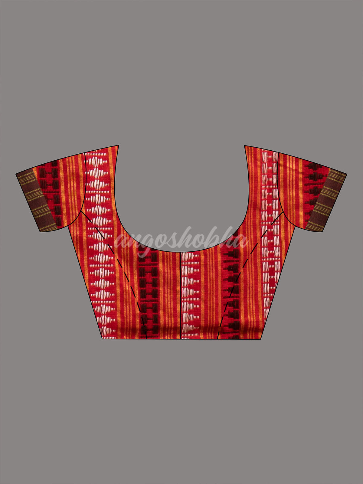 Description: Look your traditional best in this beautiful handwoven red cotton sari included with the pallu that is disguised with multi color.The border of the sari is made of black white color temple design included.The body is hatched with motifs.The temple design also included in it. This is a handloom saree for every day wear made to make heads roll. The saree comes with an attached blouse piece.Please note: This piece is handmade with love and care by various artisans. So buy this item very soon.