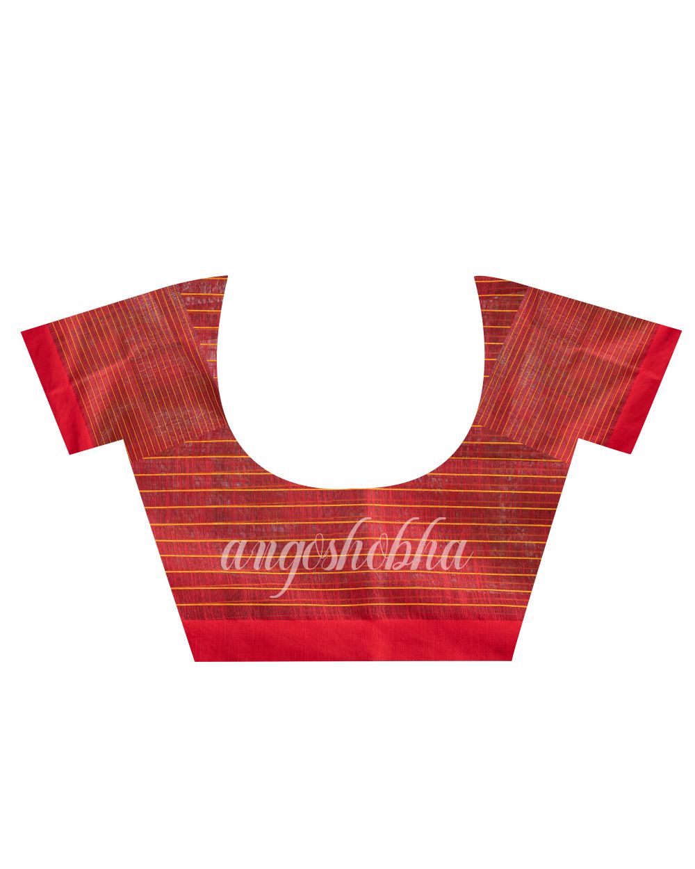 Description: Add a vibrant burst of color to your wardrobe with the enchanting black yellow  jamdani sari.The sari is made of cotton blend fabric beautified with wonderful hand woven jamdani sari included subtle and elegance work.The border of the saree is disguised with red color.The hem of the sari is hatched with multi color border stripes design and the body of the sari is covered multi color box stripes.It is attached with a blouse piece.Suitable to wear for casual outing,social meet,festival etc.So buy this sari now until finishing the stock.