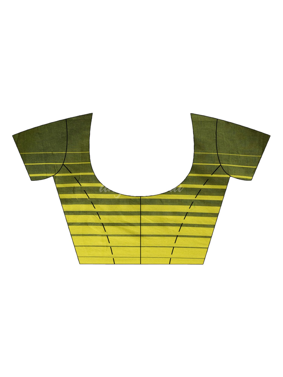 Description: Accentuate your ethnic ensemble by wearing this saree from Angoshobha.This Fren green cotton blend , and self  broder. saree all body multi colour stripe.  multi colour pallu and multi colour  pompom added. attached with Fren green colour blouse piece, with fren green sheen conjoined.Obviously you can trust on this collection. We are always with your fashion and choice.