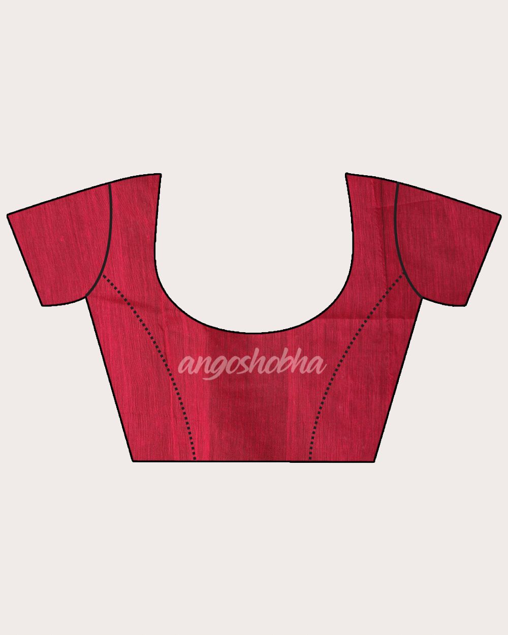 DESCRIPTION: The latest and wonderful sari is hatched with fuchsia black hand weaving unique design.It is made with cotton blend fabric and the border of the sari disguised with black color with kotki work and the hem of the sari is concocted with black checks compiled with fuchsia color jamdani work.It is attached with a blouse piece.It is suitable to wear as daily wear and festival. The body of the sari is covered with motifs.To collect this unique sari order now