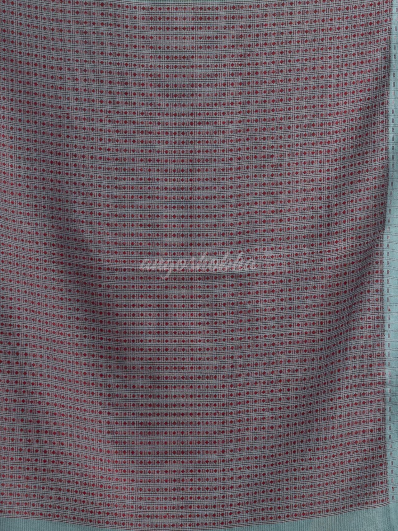 Description : Cotton is spun into yarn which is used to make different types of textiles. Cotton is the most widely used cotton blend fiber used for making textiles and is grown in many states of India.this Goofy Grey cotton kota jacquard  handwovon saree.The border of the saree is Goof grey.The all body kota check of the saree is completely covered with Red colour motifs.it is attached with light green colour blouse picec. working the jacket on the hem of the saree.