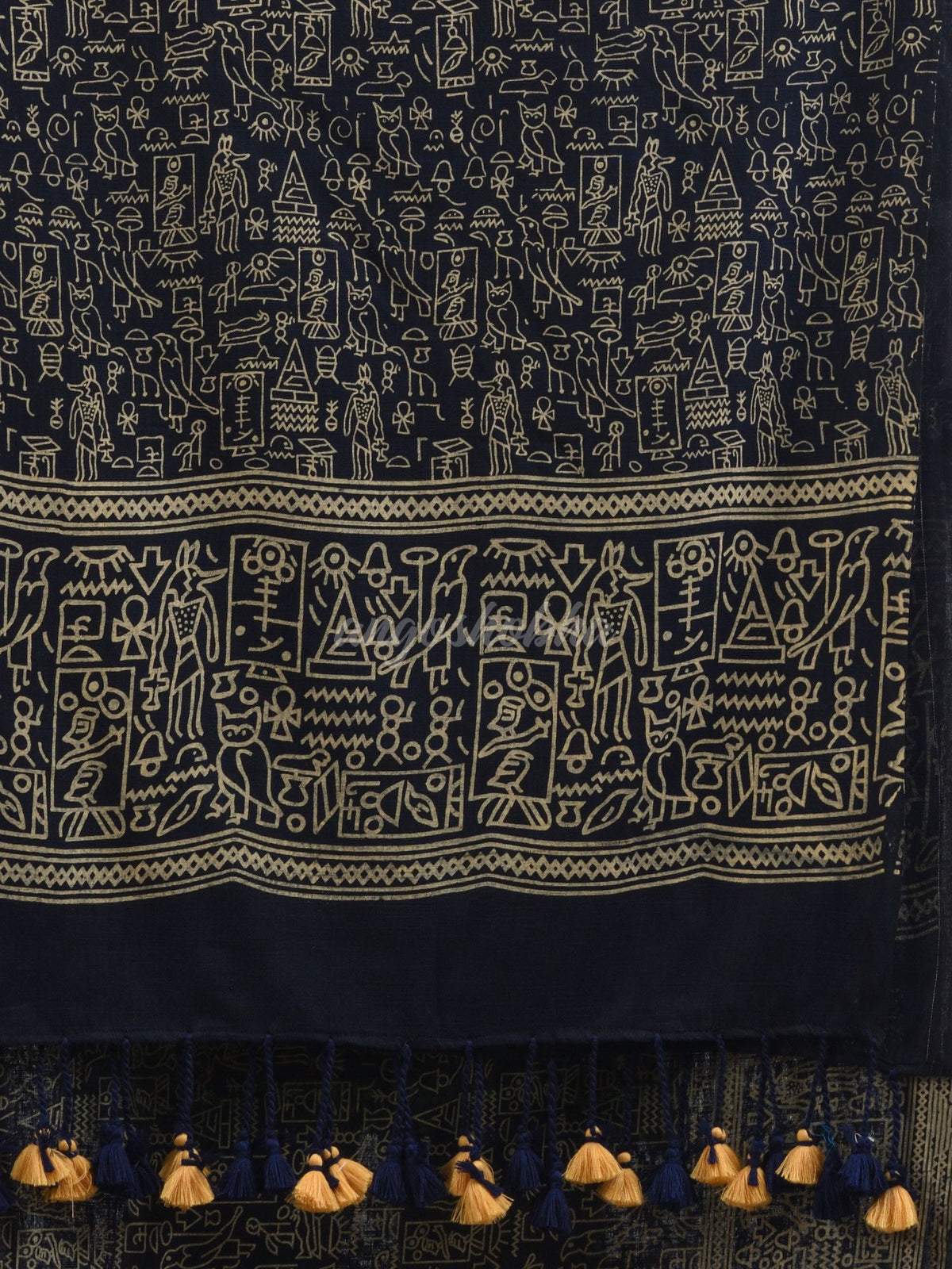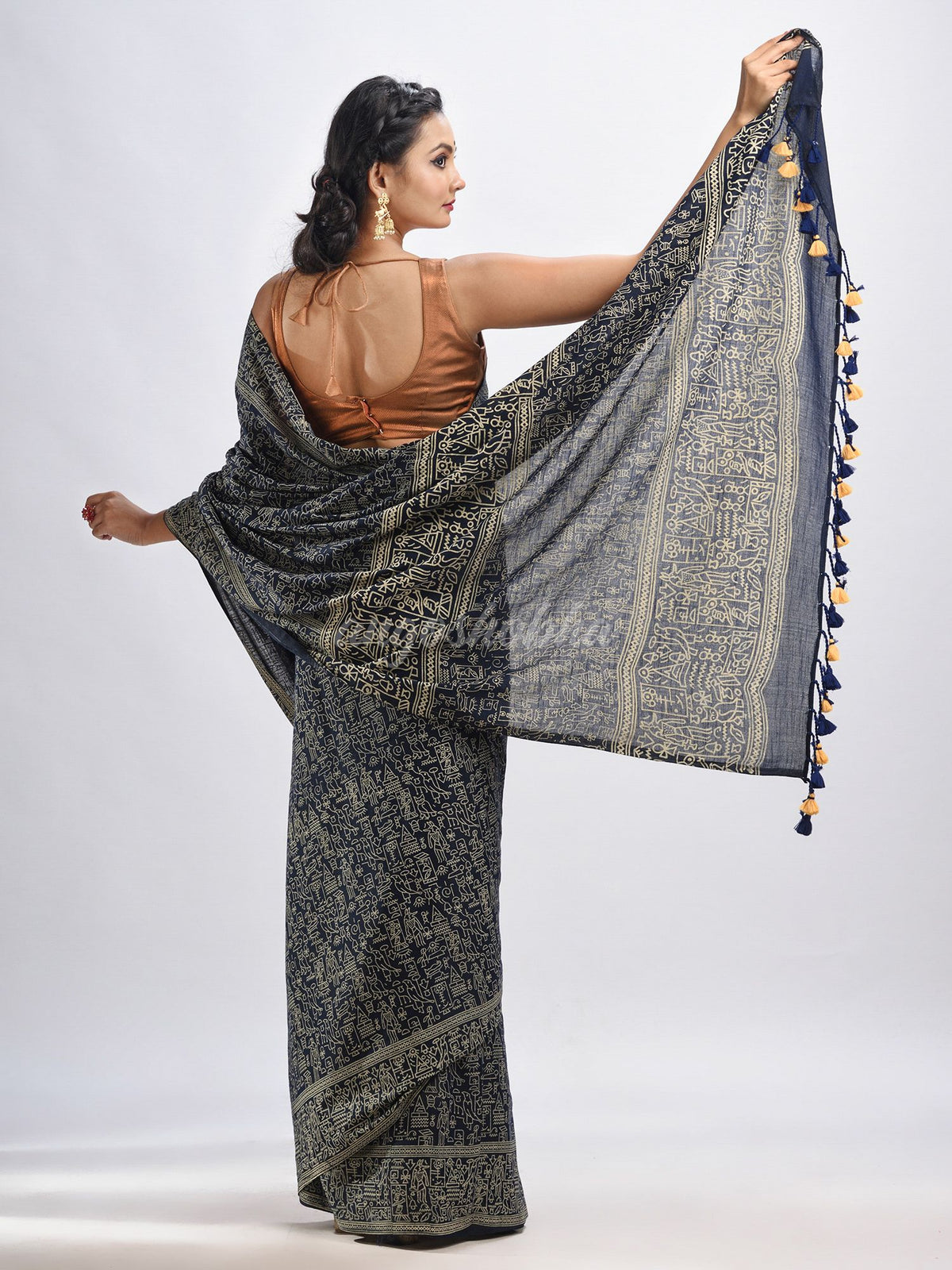 Description:   Make a utterance in the society by wearing our latest new collection Traditional Nevy blue Cotton Blend Saree. It is mainly constructed with Nevy blue cotton blend fabric that is soft wear and very easy to carry any where.The border of the saree is printed with Dolls and birds. With pallu the saree is printed with Dolls and birds.This gorgeous look makes you a fantastic appearance because this is generally crafted by the handweaving of the weavers from Angoshobha.