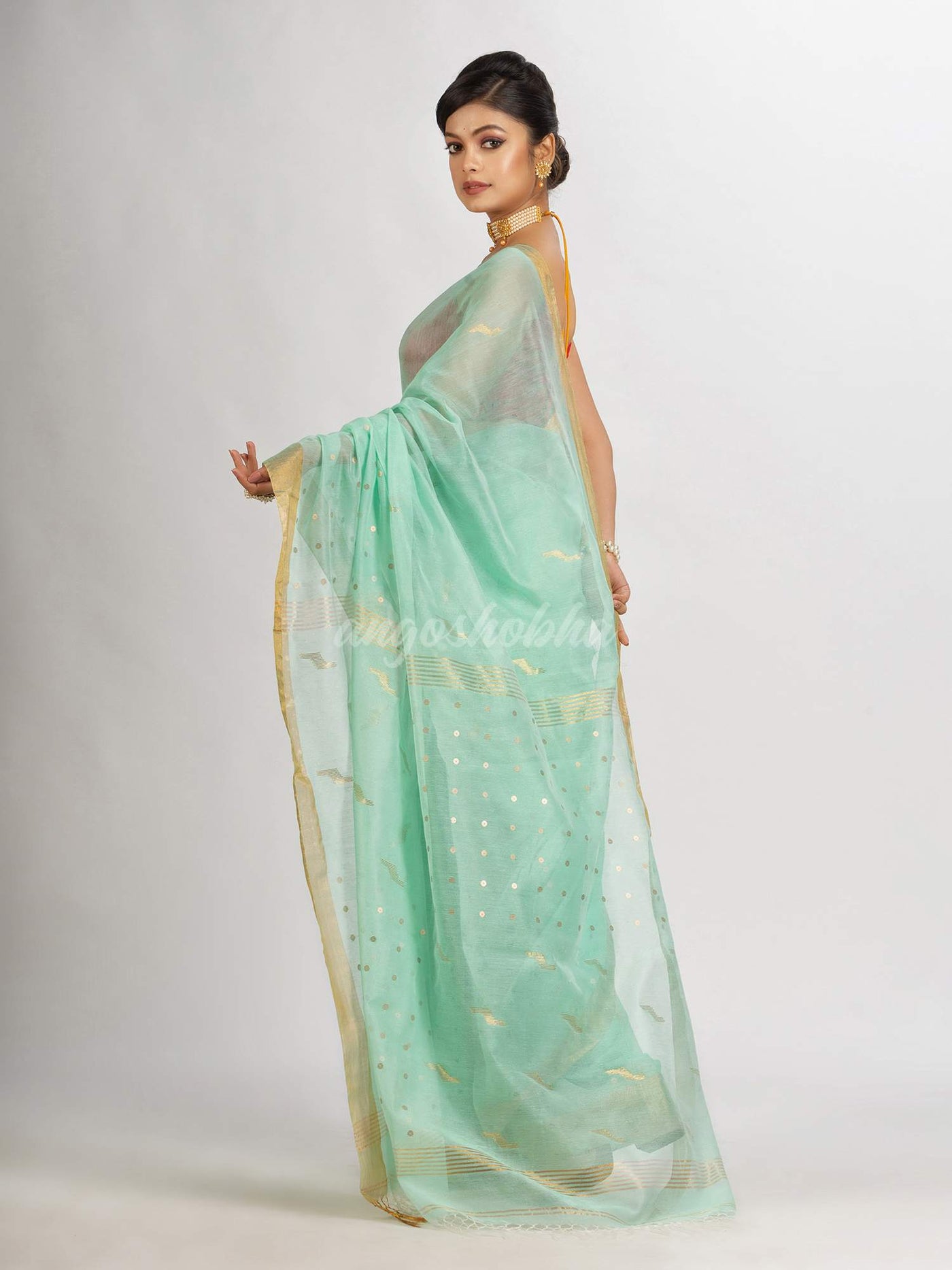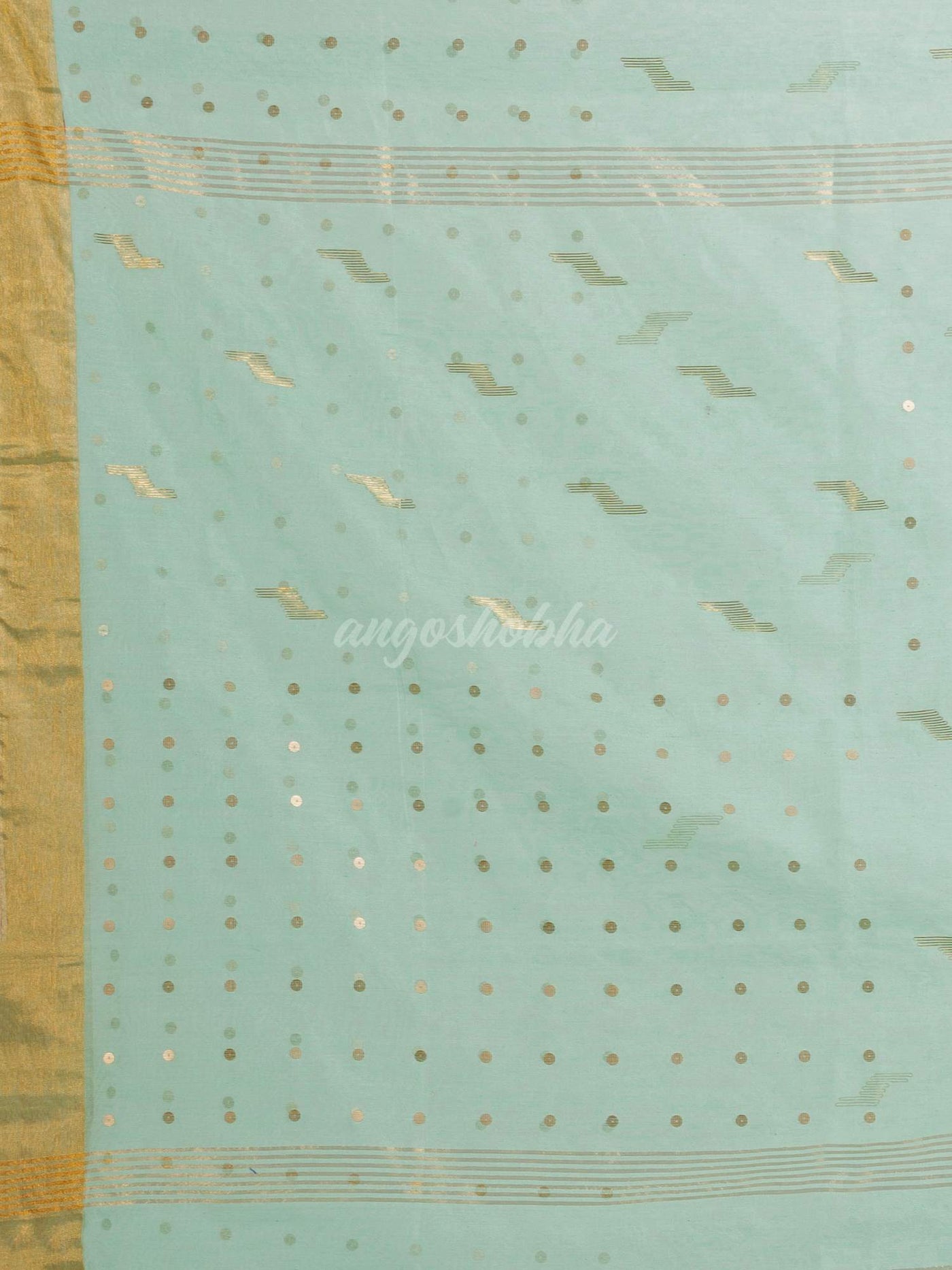Pastel Green Silk Cotton Pocket Chumki Jamdani handloom saree