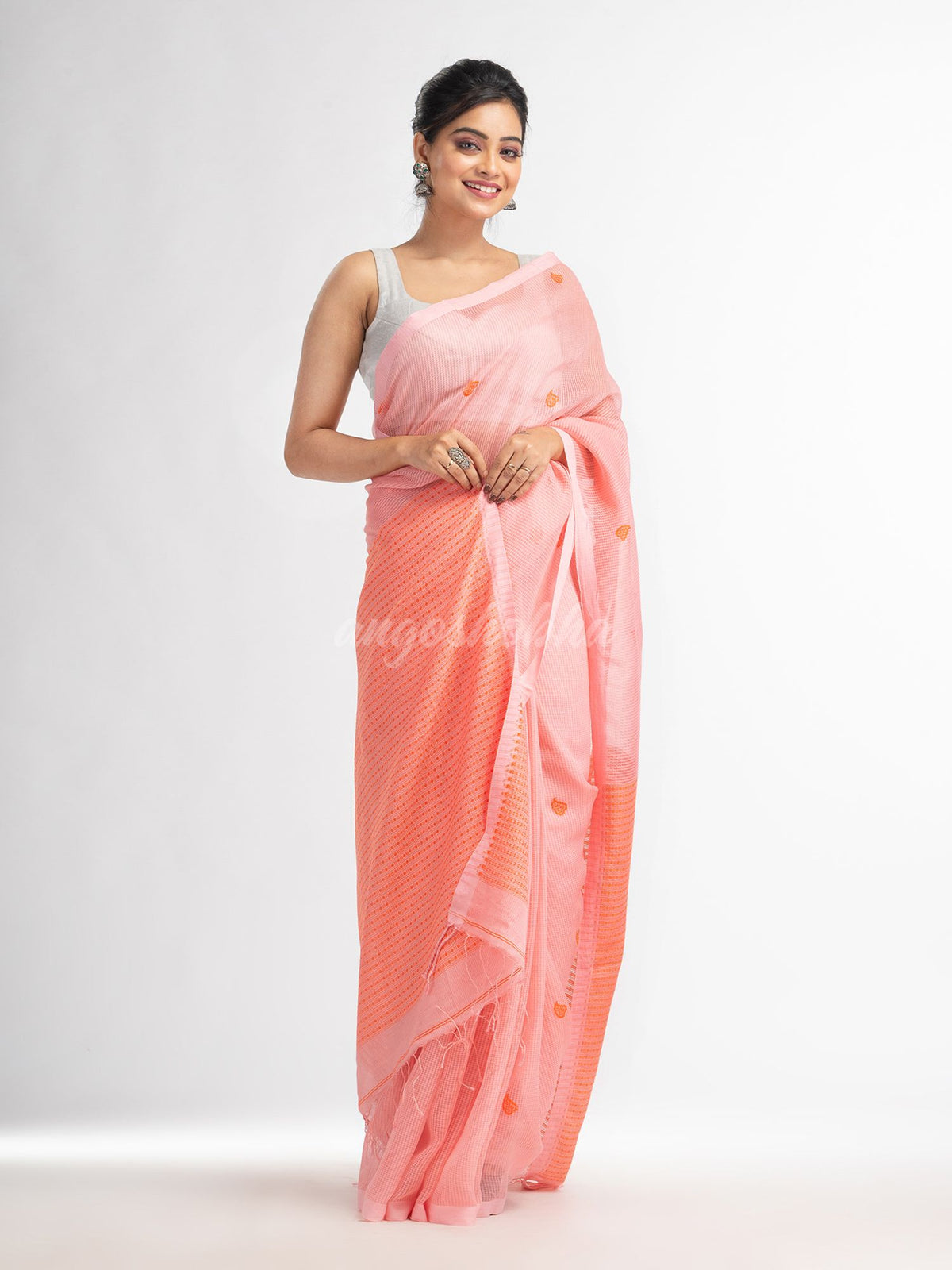 Peachmod resham cotton kota check all over Buti jacquqrd Pallu handwoven saree