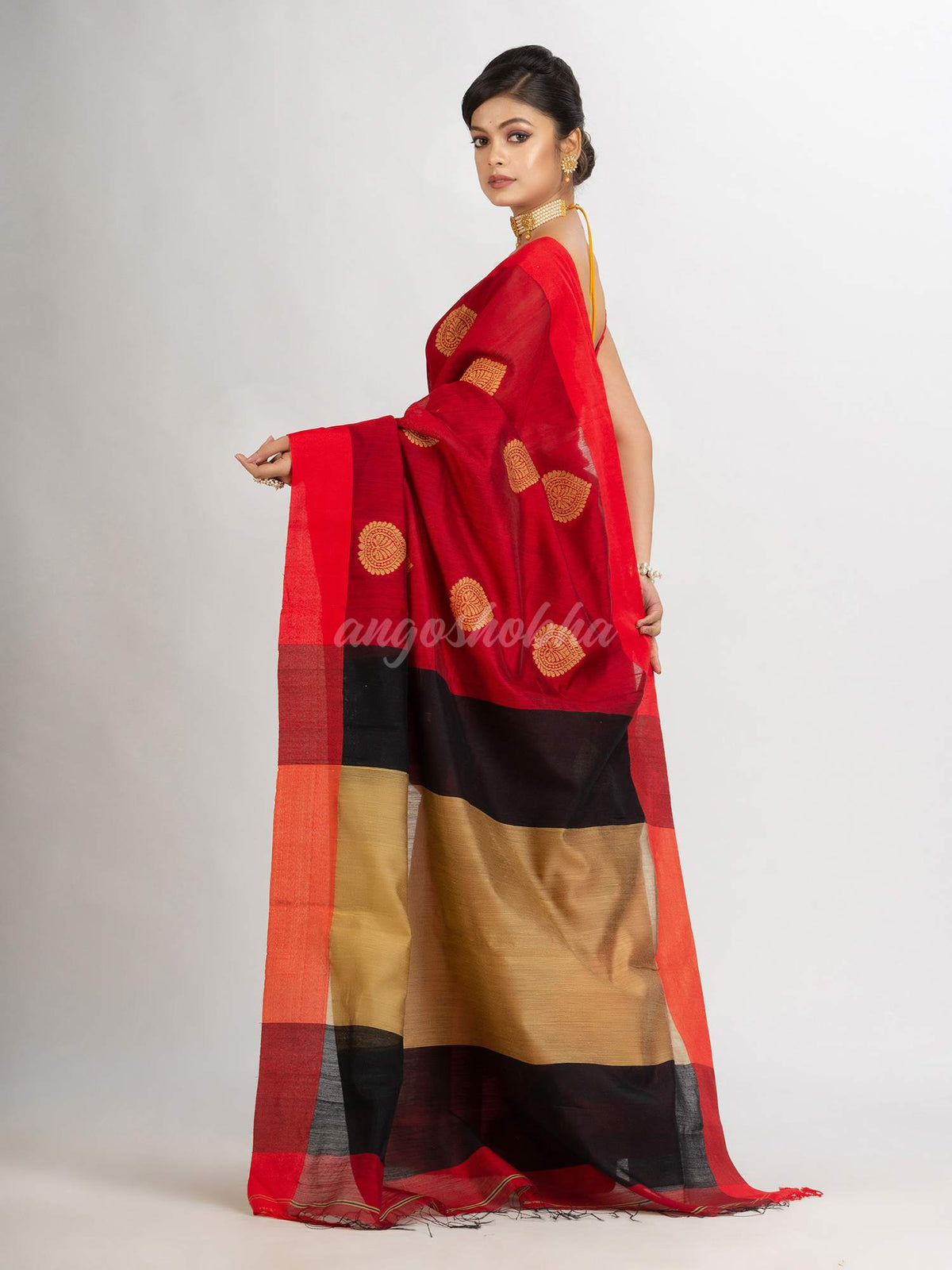 Red Cotton Blend Handloom Jacquard handloom Saree