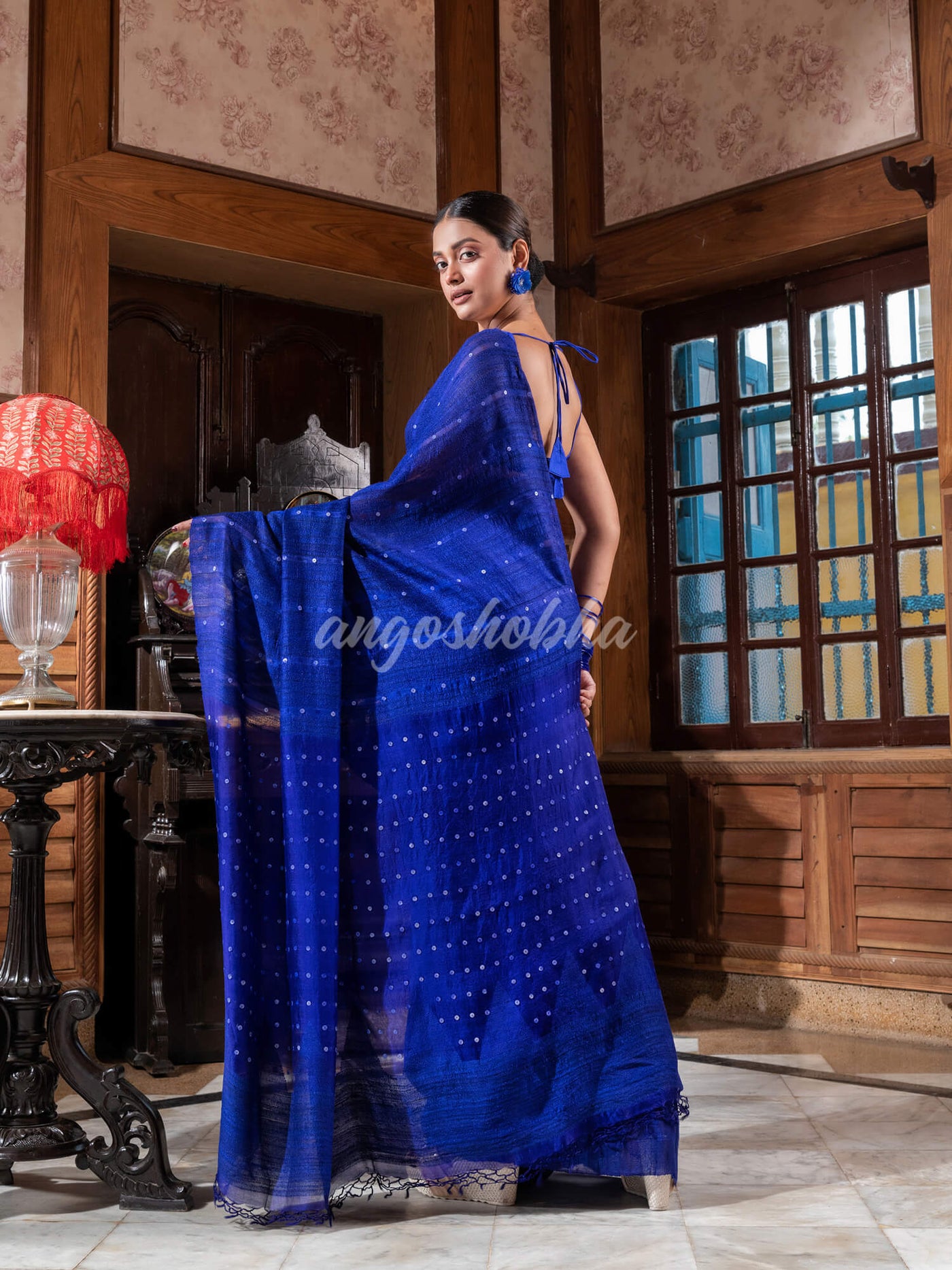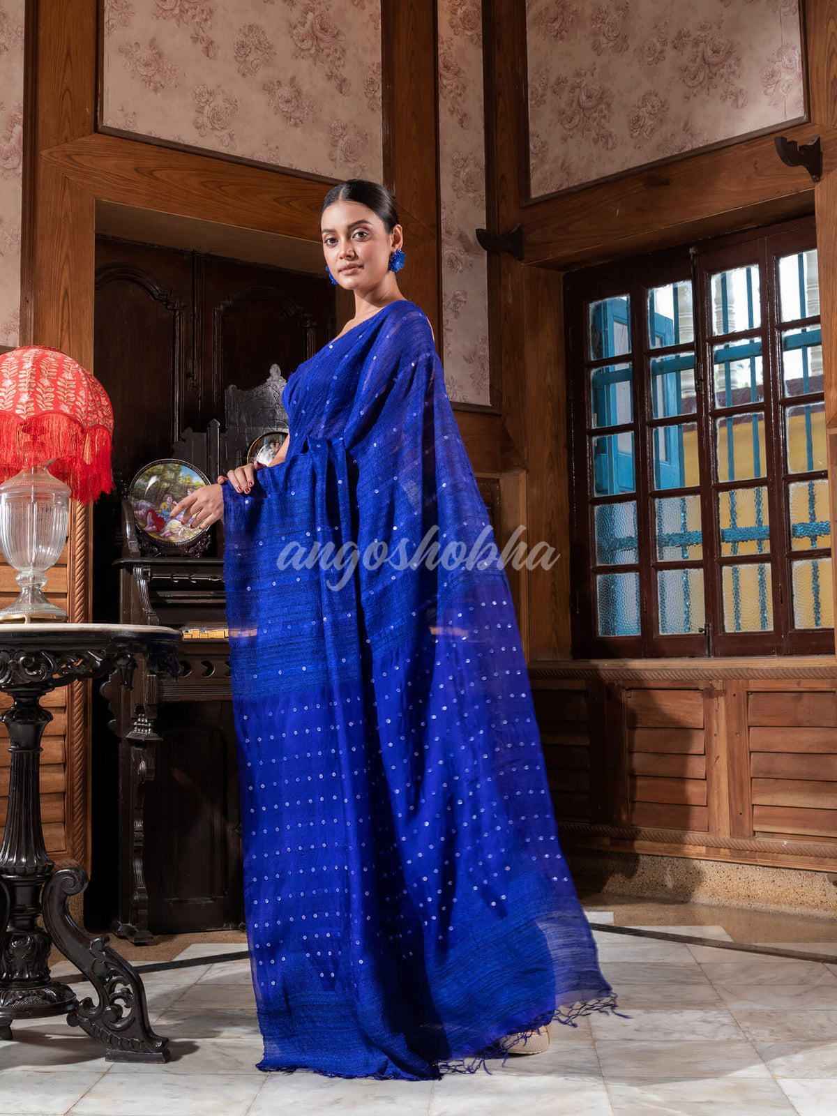 Angoshobha ethnic saree comes with an attached blouse piece according to your taste and preference. This Blue silk Ghicha saree is crafted by skilled craftsmen using high quality silk ghicha fabric without compromising on its quality. Saree is very comfortable in summer and suitable for festivals. this saree and blouse set will fetch you Oodles of compliments and praises. So buy this product recently. Colour hues may slightly vary from that which appears in the image. Minor irregularities is the uniqueness of handlooms and makes each piece exquisite.