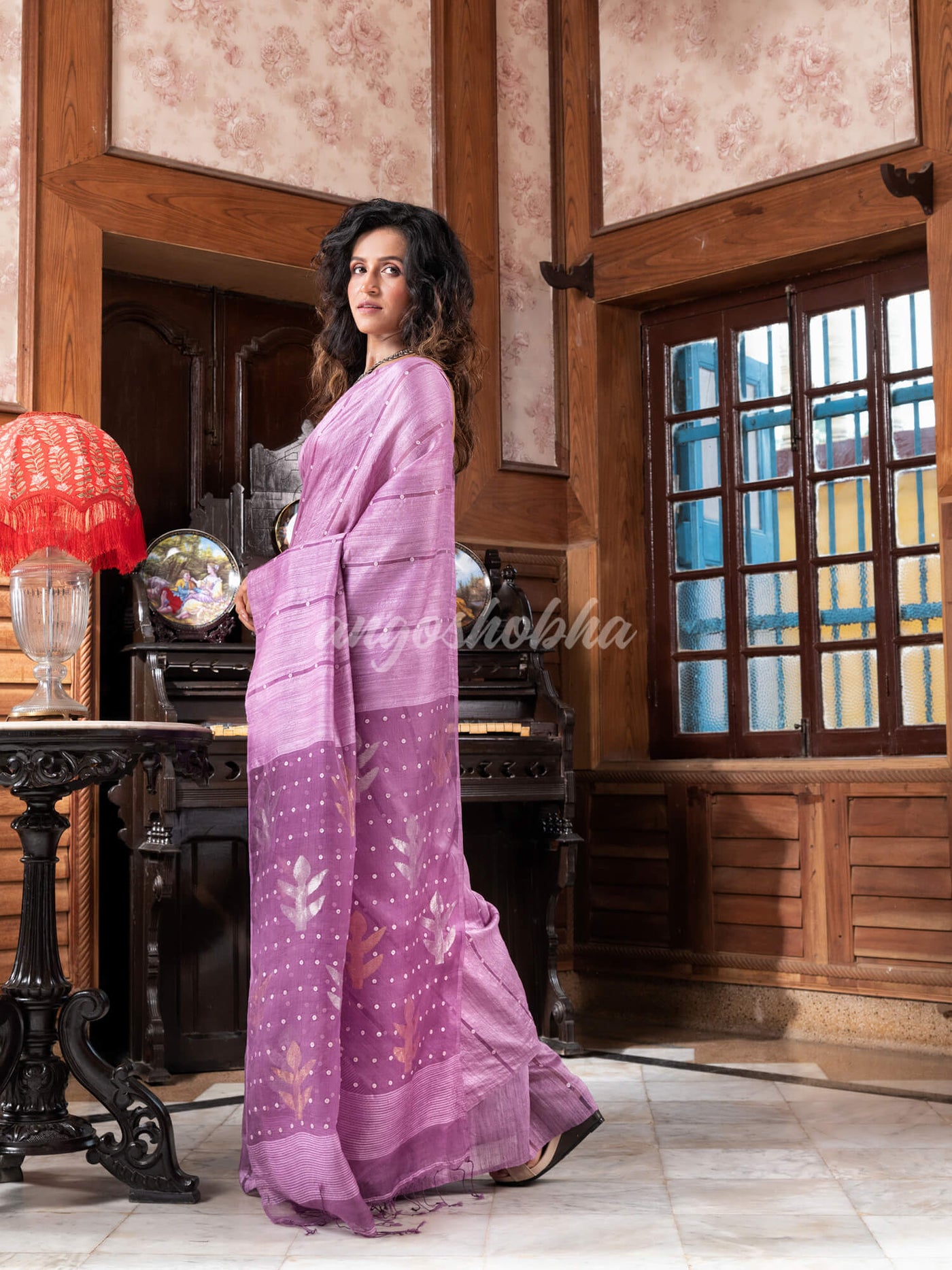 DESCRIPTION: Angoshobha’s ethnic saree comes with an unstitched blouse piece, which can be stitched according to your taste and preference. This Light Purple sequins matka silk saree is crafted by skilled craftsmen using high quality matka silk fabric without compromising on its quality.This saree is concocted with latest design on the pallu over the body the sequins are spreading out. Saree is very comfortable in summer and suitable for festivals .With this beautiful sequins design and fabric, this saree and blouse set will fetch you Oodles of compliments and praises.