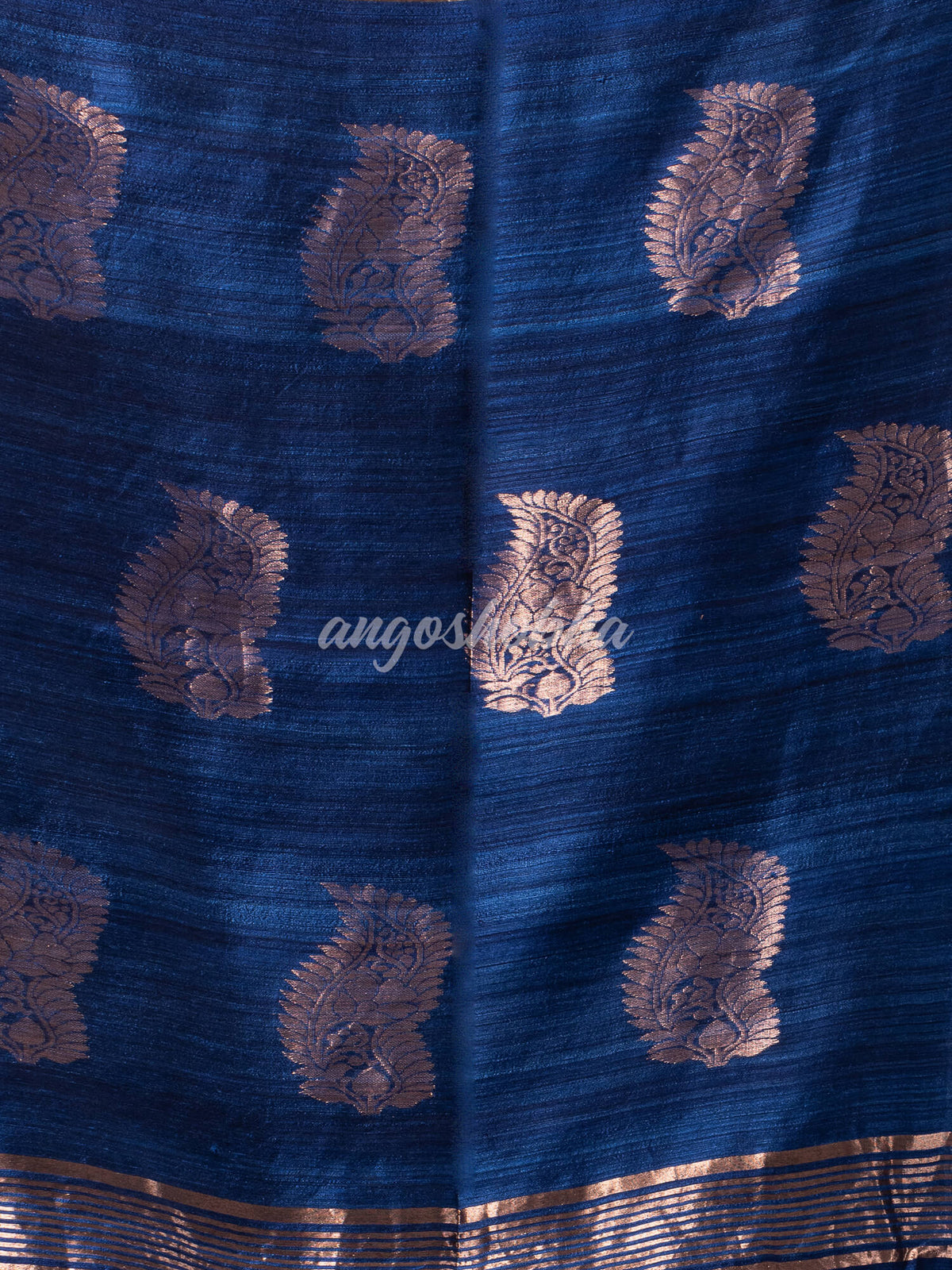 Navy Blue Matka Body with Golden Motifs & Kolka Pallu Handwoven Saree