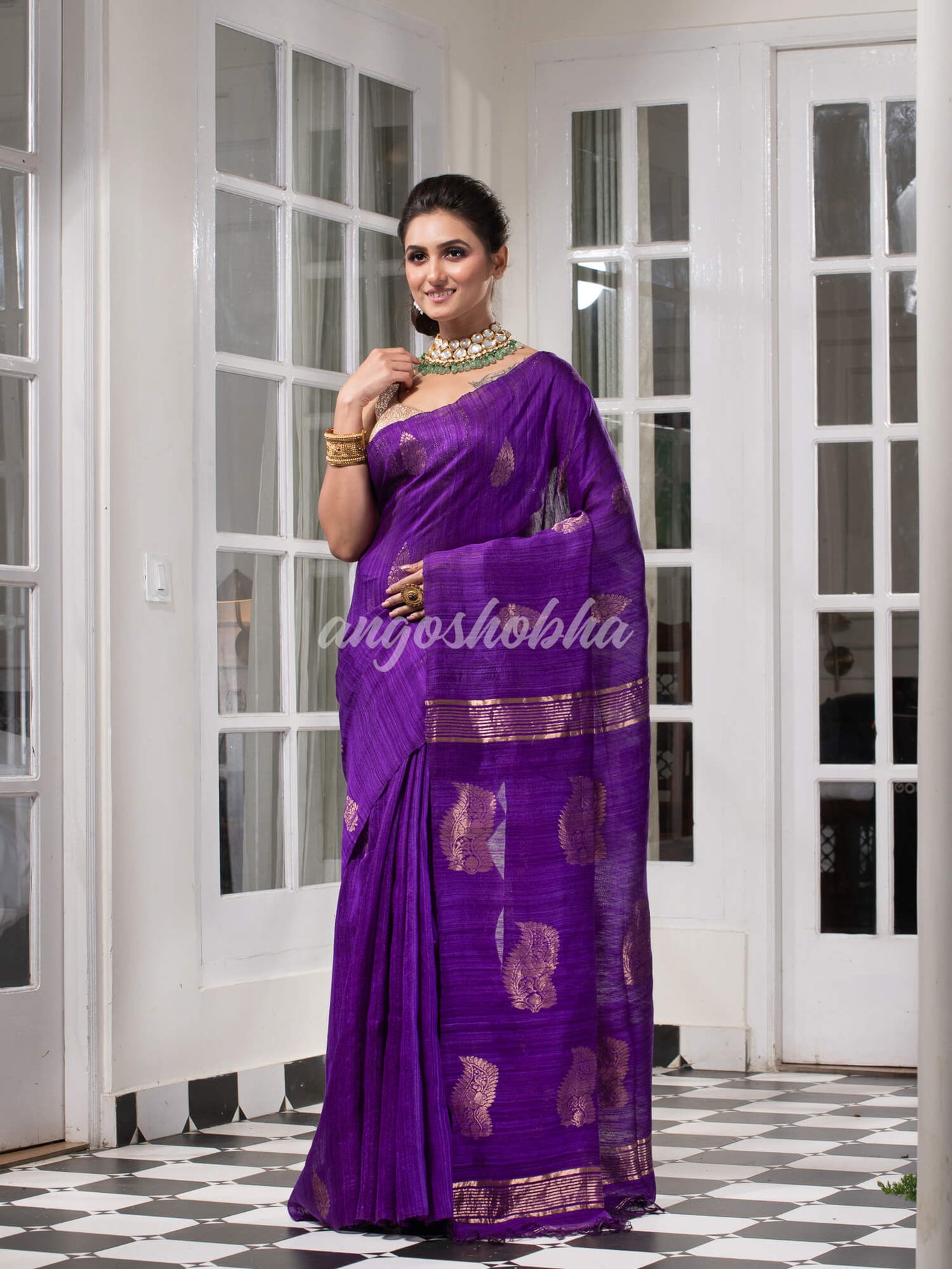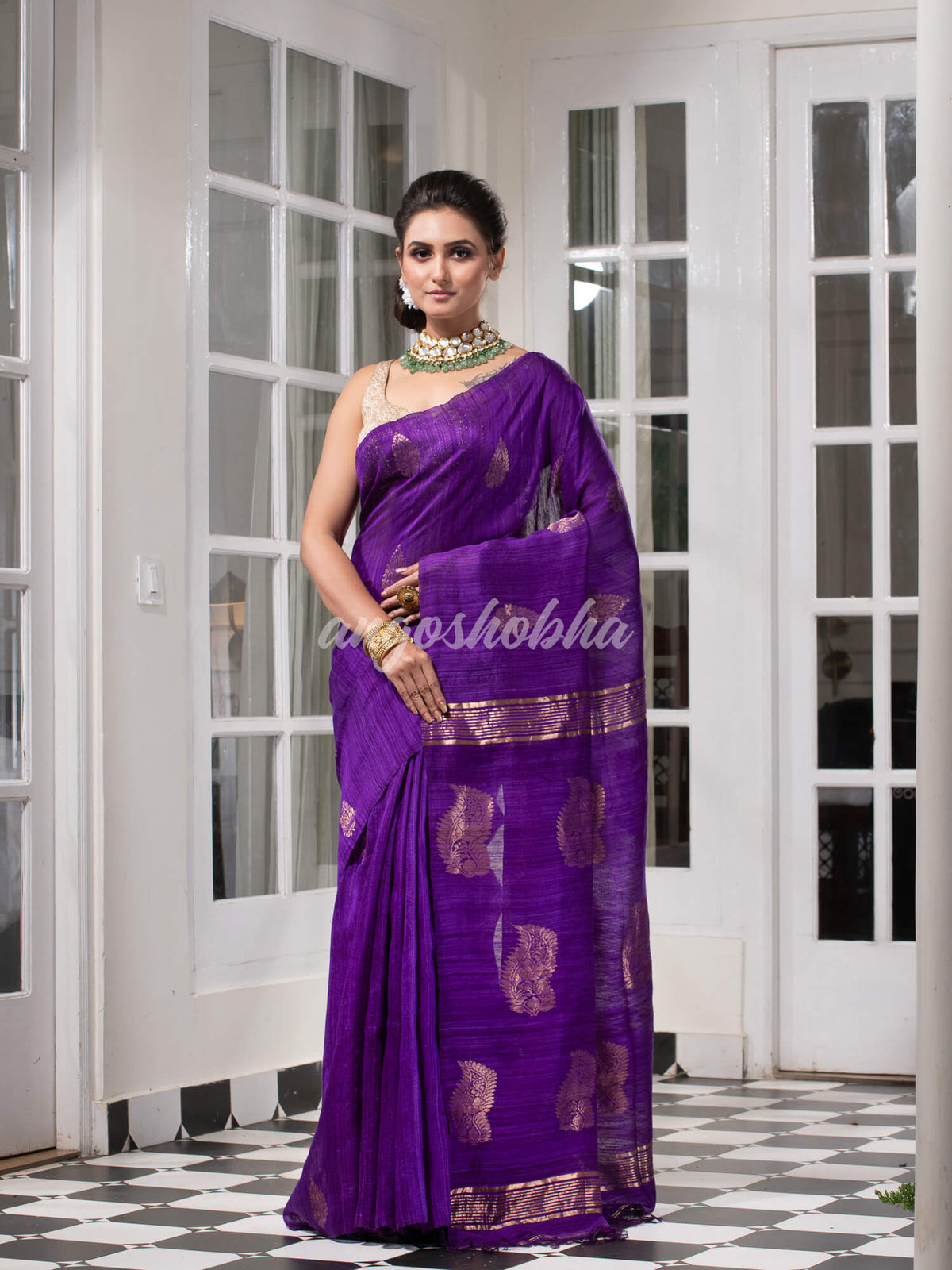 Purple Matka Body with Golden Motifs & Kolka Pallu Handwoven Saree