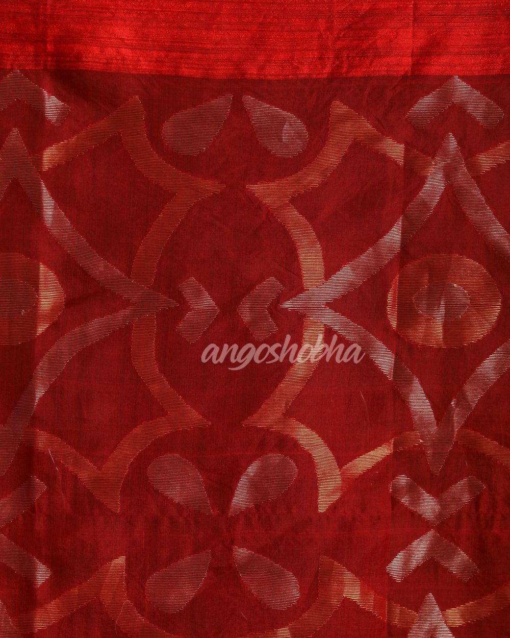 Description: Accentuate your ethnic ensemble by wearing this saree from Angoshobha. Sarees have their own grace, specially this one. This saree from Angoshobha is a beautiful red handloom saree with jacquard matka silk all over.The body of this sari is hatched with motifs and  unique design.It has red border and red with silver latest style consumed compilation hem.Over the body motifs are found.Crafted in an matka silk  fabric, this beauty gives the most comfortable fit. Style of it with minimal jewellery and high heels to slay the ethnic look.You can wear anywhere and any festival moment with wonderful enjoyment.So collect this product and enjoy with wearing matka silk saree. Obviously you can trust on this collection. We are always with your fashion and choice.