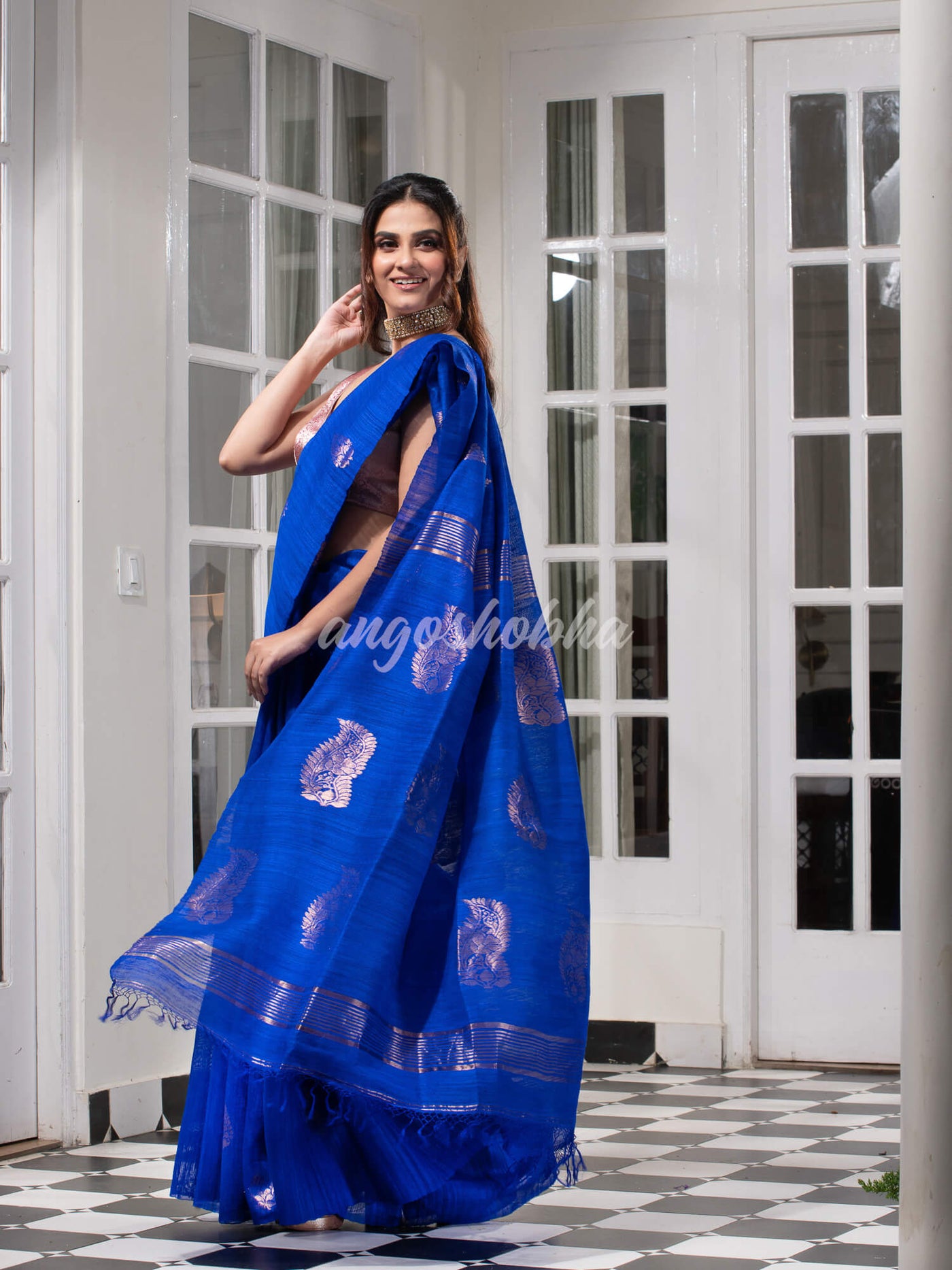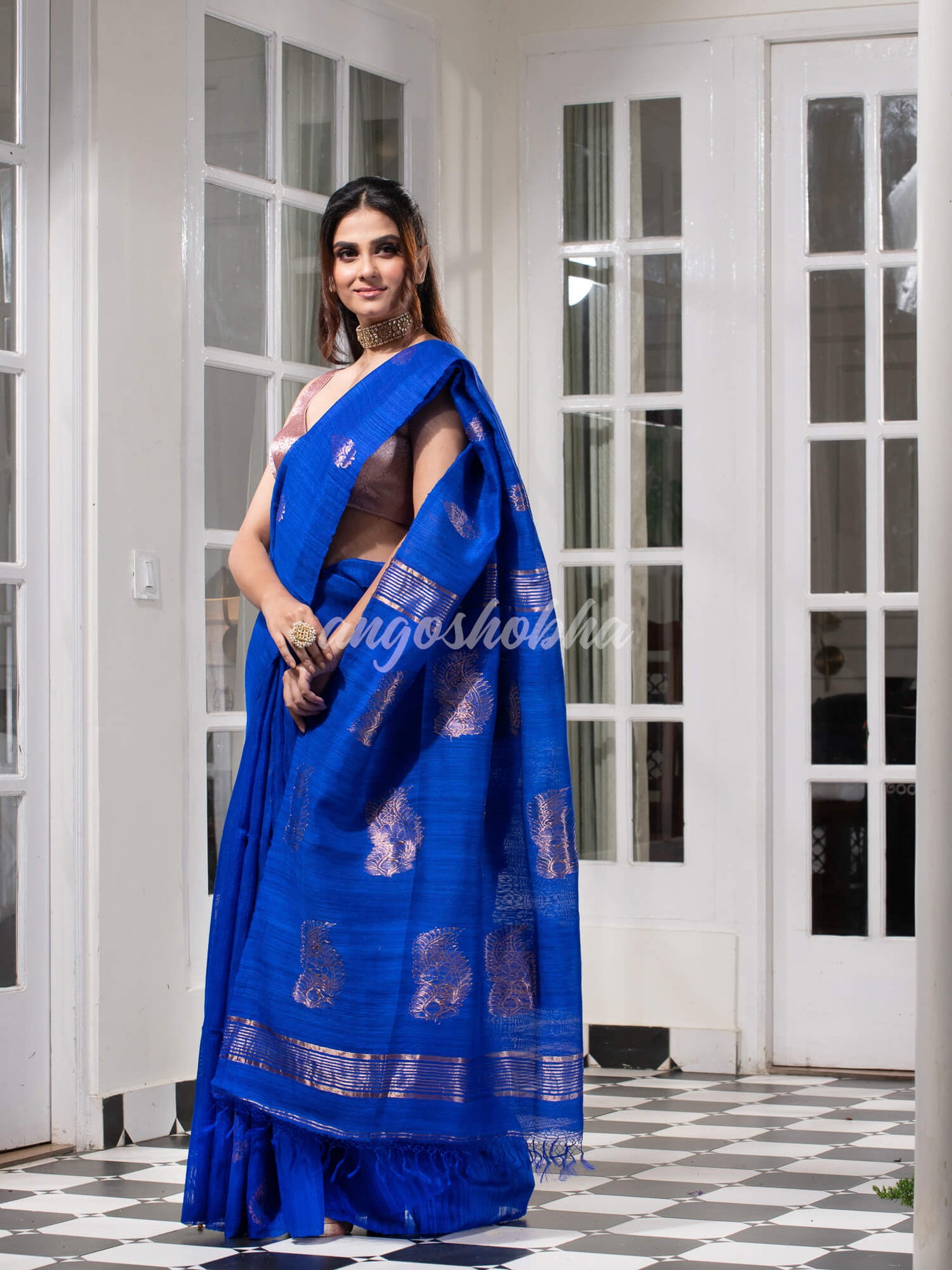 Royal Blue Matka Body with Golden Motifs & Kolka Pallu Handwoven Saree