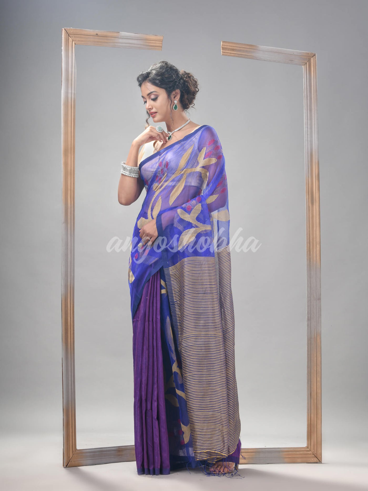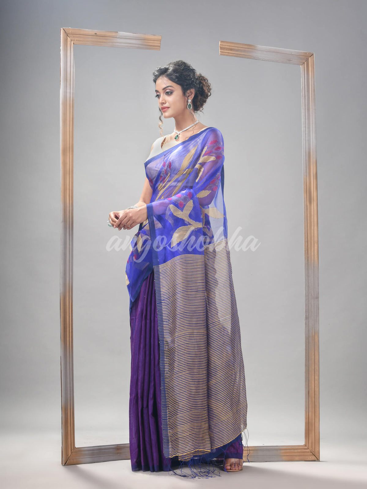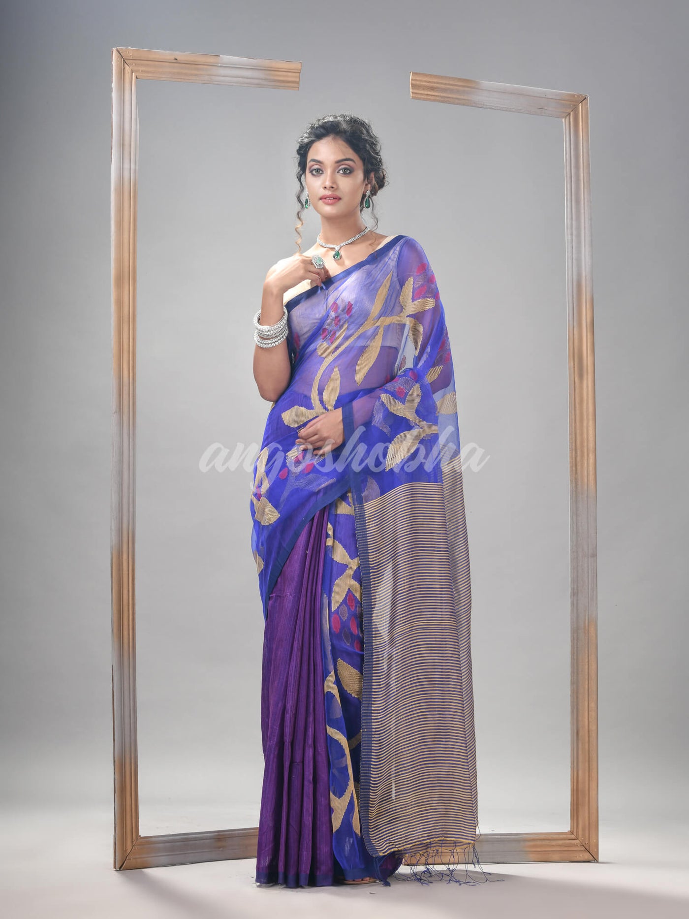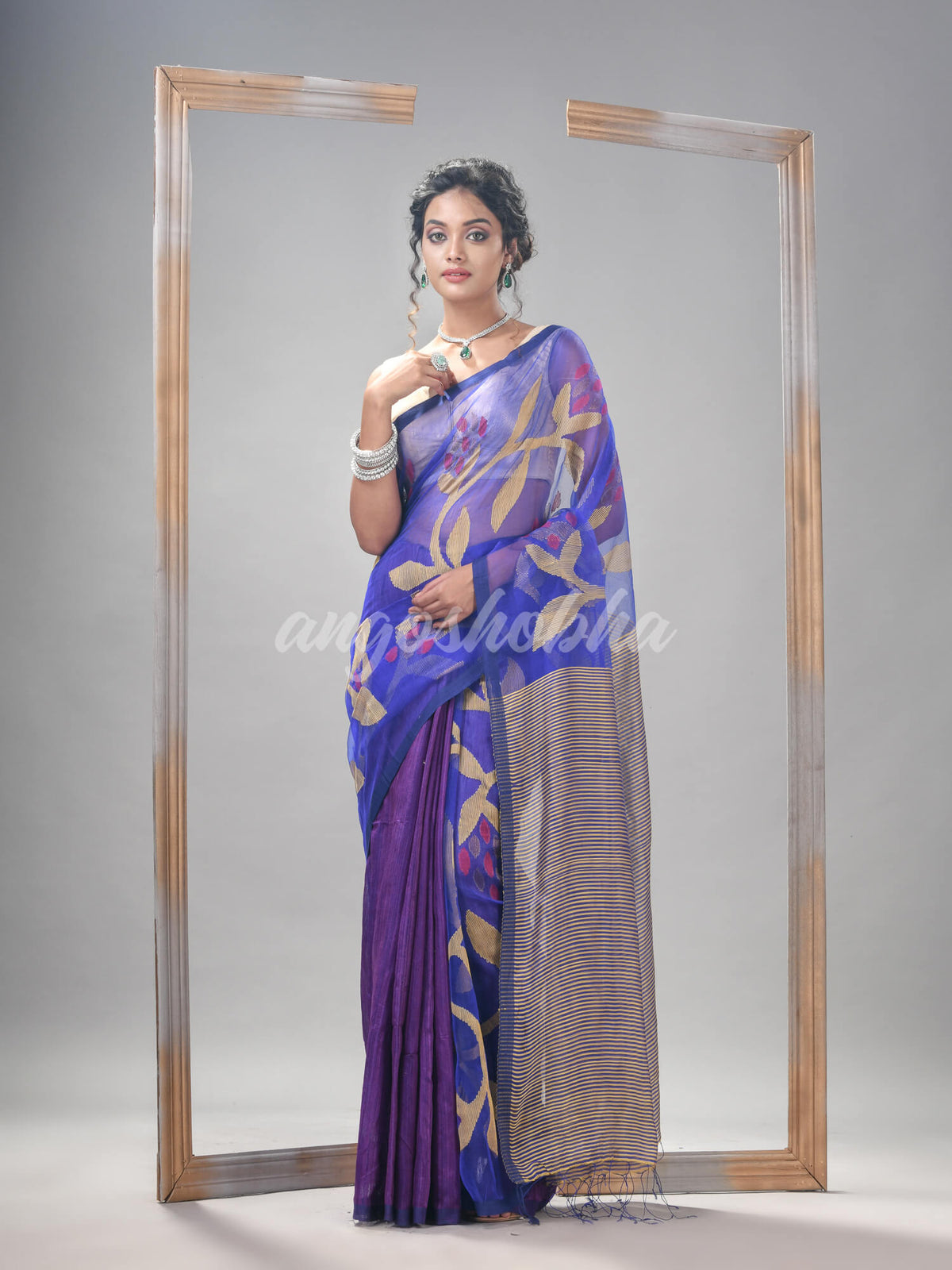 Description: Accentuate your ethnic ensemble by wearing this saree from Angoshobha. Sarees have their own grace, specially this one.This saree from Angoshobha is a beautiful royal blue jamdani Silk Matka saree. The saree all body Motive. with Blue colour chin border.and pallu strip The saree comes with a Yellow colour running blouse piece. You can wear any festival moment with wonderful enjoyment. so collect this product and enjoy with werring linen saree.
