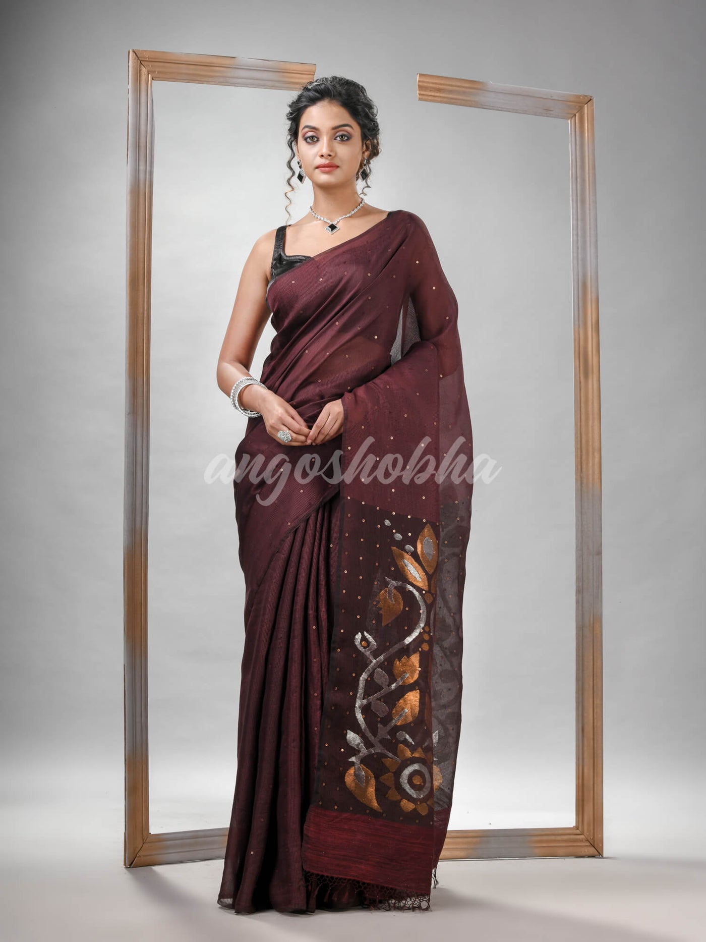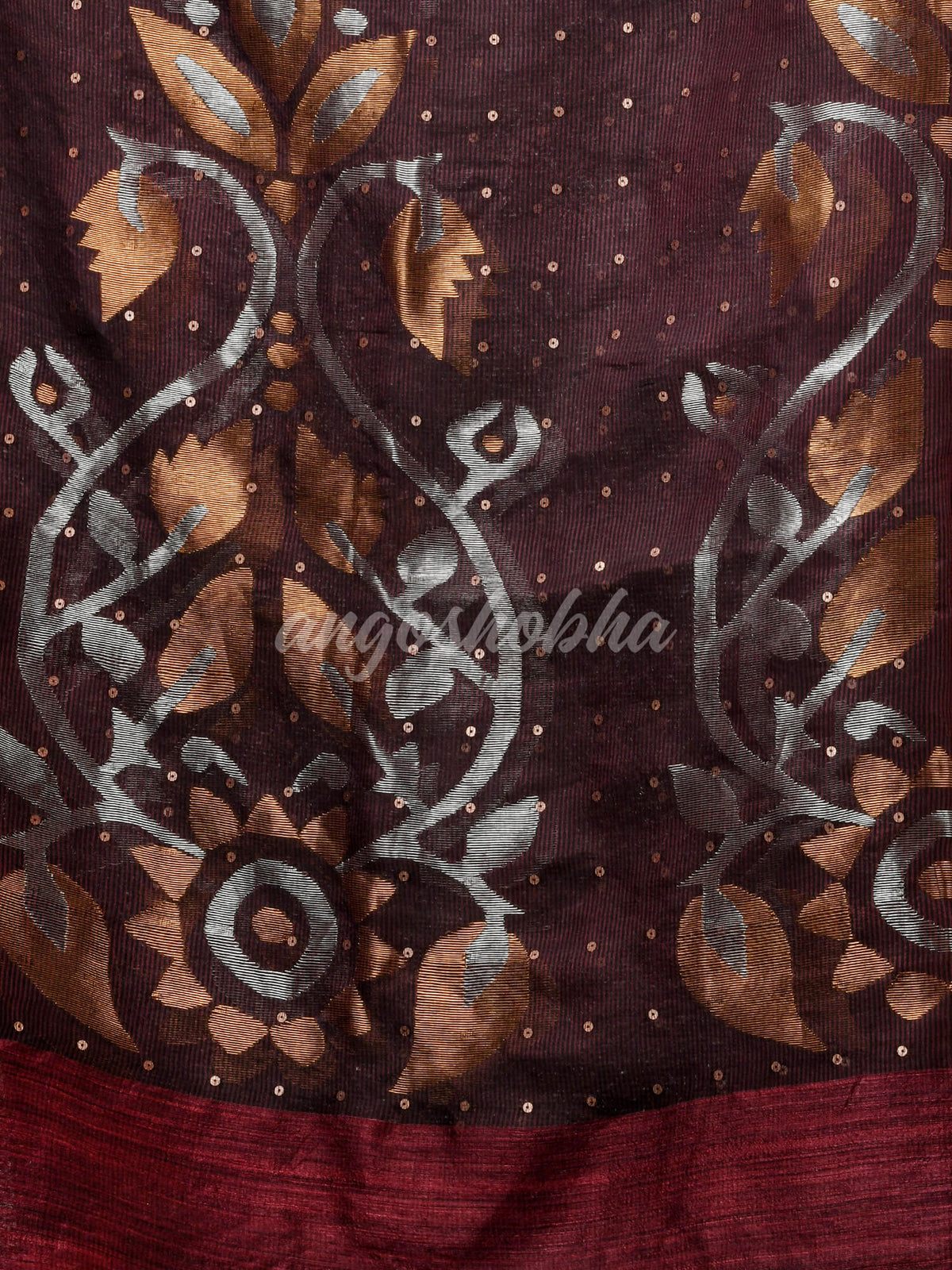 Traditional Maroon Matka Silk Sequin Soft Jamdani Saree