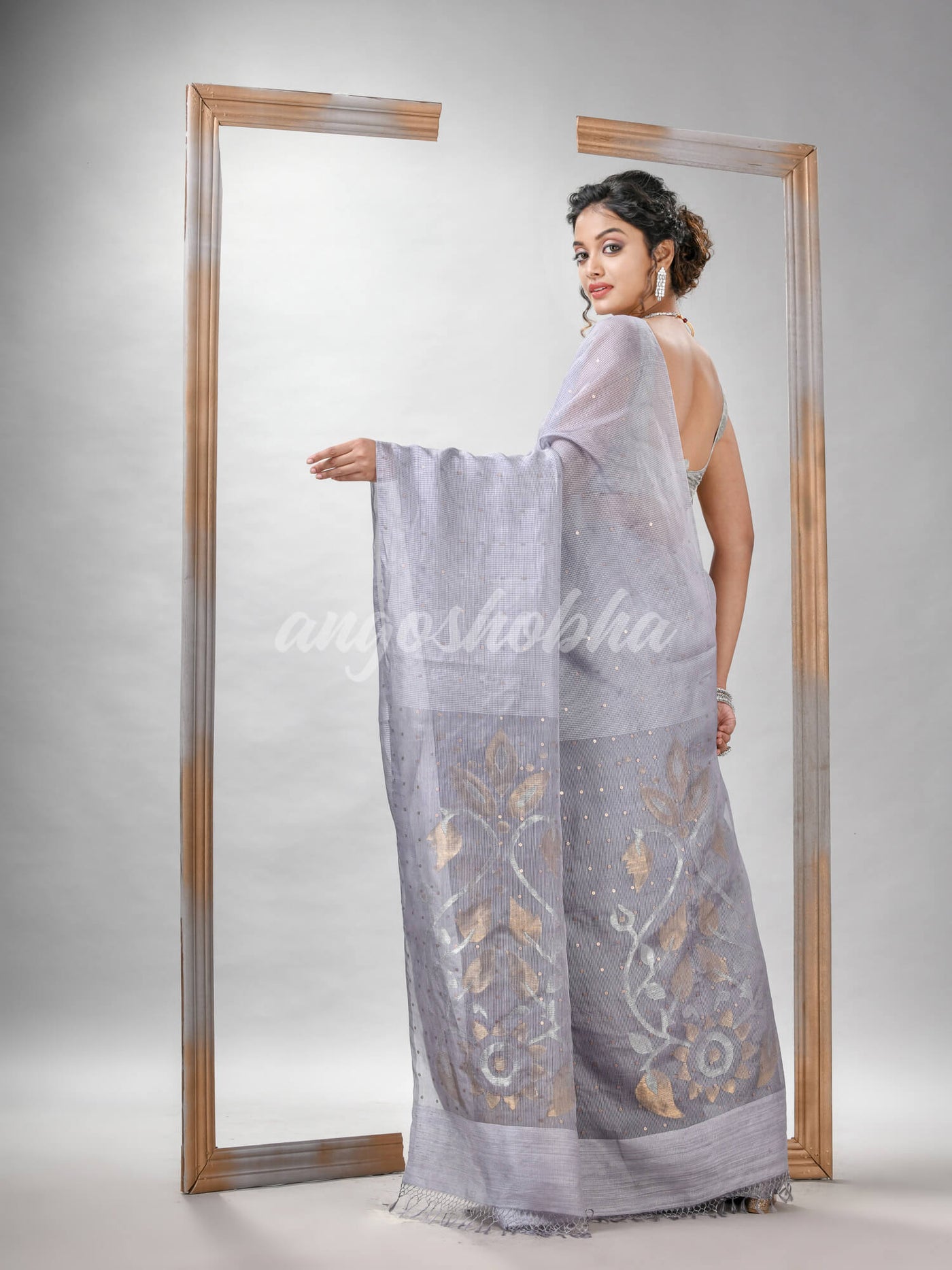 Traditional Silver Matka Silk Sequin Soft Jamdani Saree