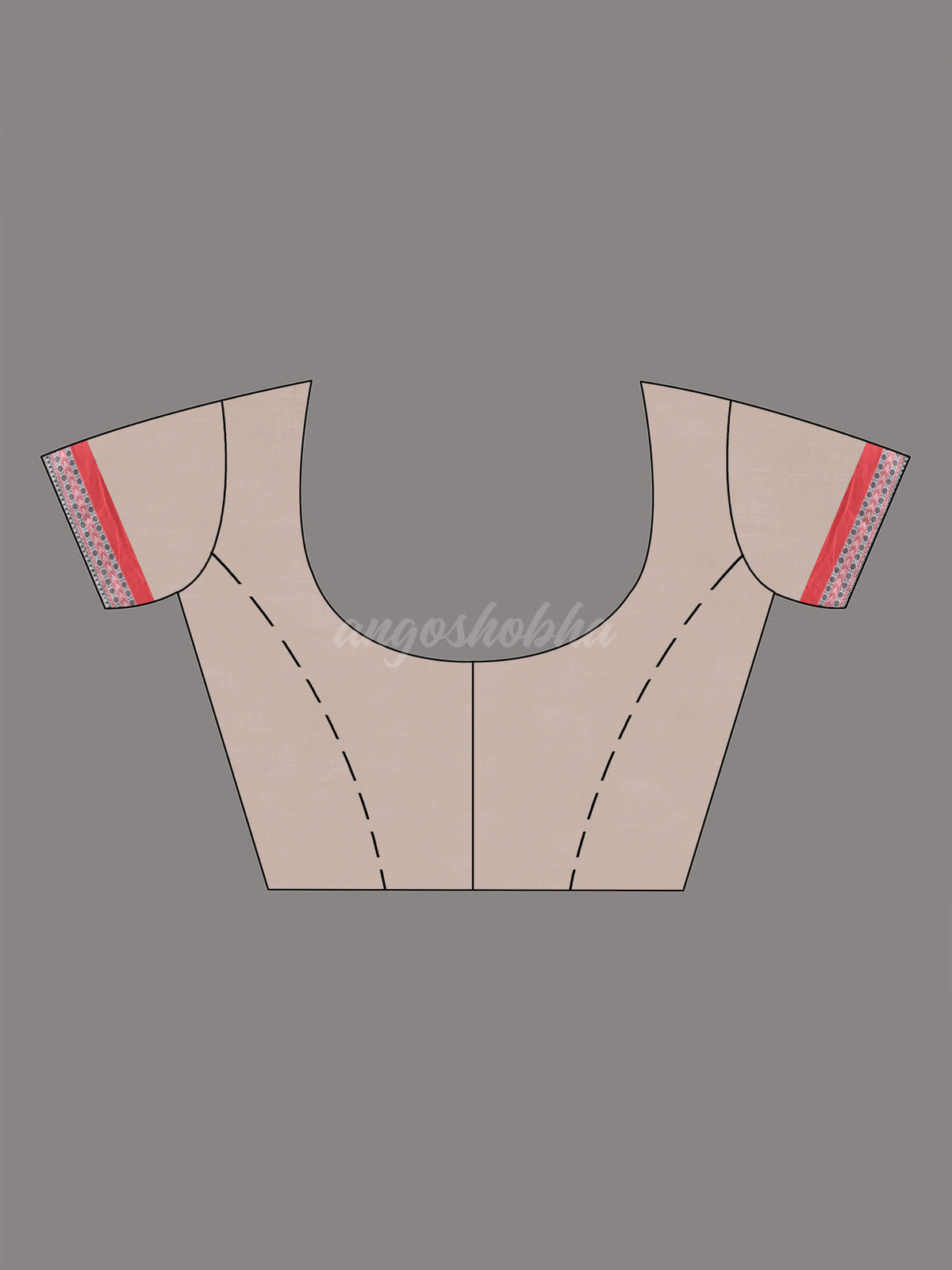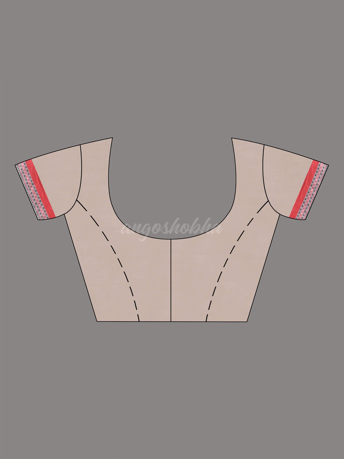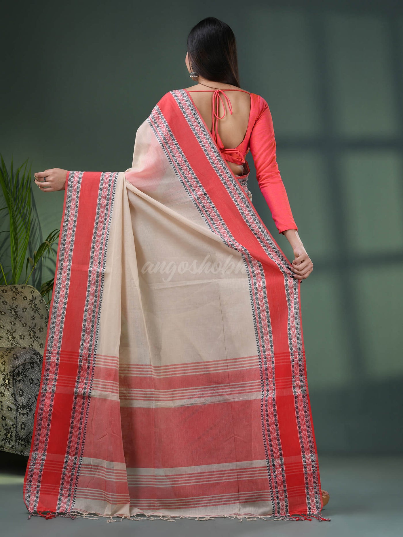 Description : Accentuate your ethnic ensemble by wearing this saree from Angoshobha. Sarees have their own grace, specially this one. This saree from Angoshobha is a beautiful Cream handloom cotton saree. the saree all body Solid. with colour jacquard design border.The pallu of the sareeis decorated with strip .The saree comes with a Cream colour running blouse piece. saree with jacquard weaving  Crafted in a cotton fabric, this beauty gives the most comfortable fit. Style it with minimal jewellery and high heels to slay the ethnic look.Colour hues may slightly vary from that which appears in the image