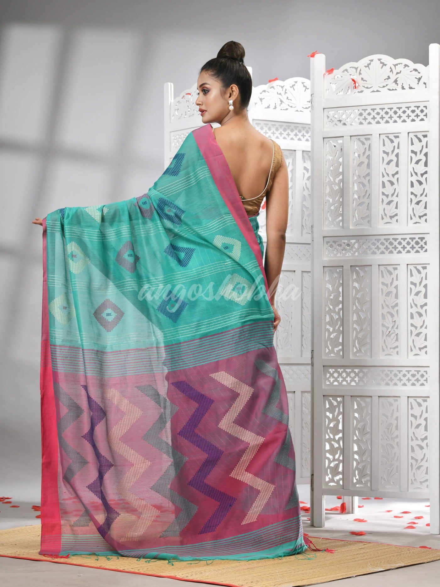 Firoza Cotton Blend All Body Motive With Rani Pallu Handloom Saree