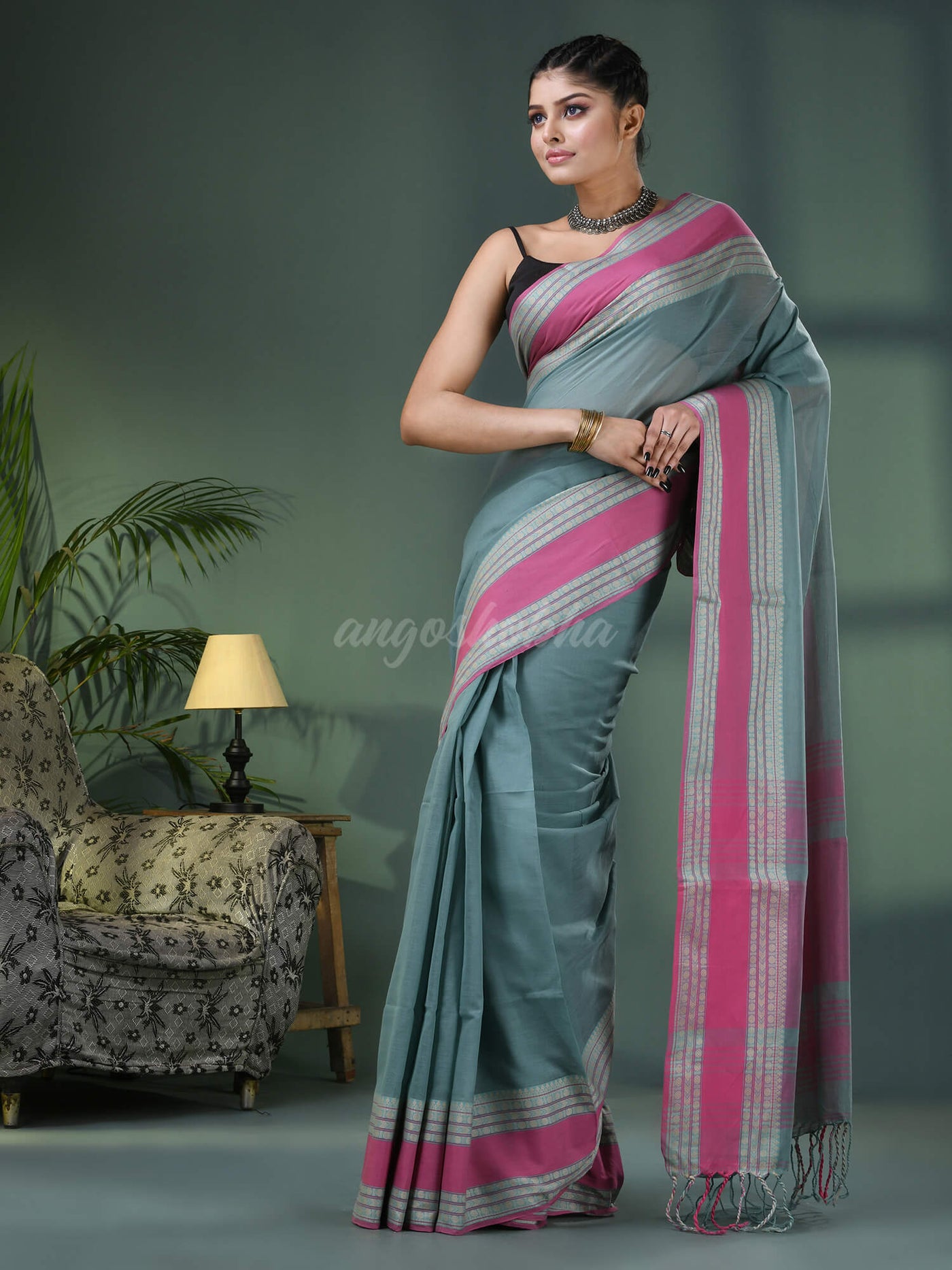 Jengle Green Cotton Jacquard Border Handloom Saree
