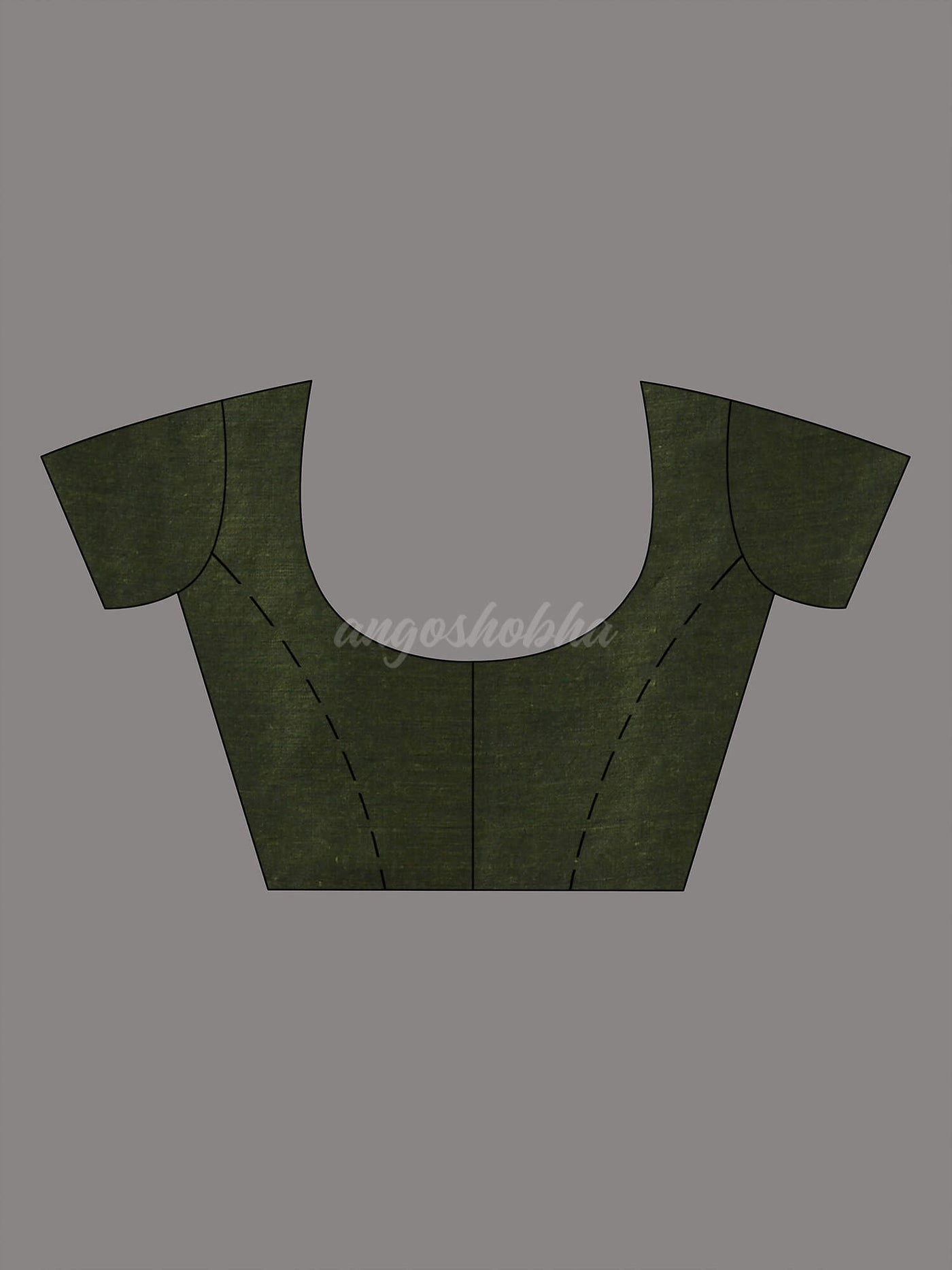 Moss Green Cotton Blend Dupion Silk Pallu Handloom Saree