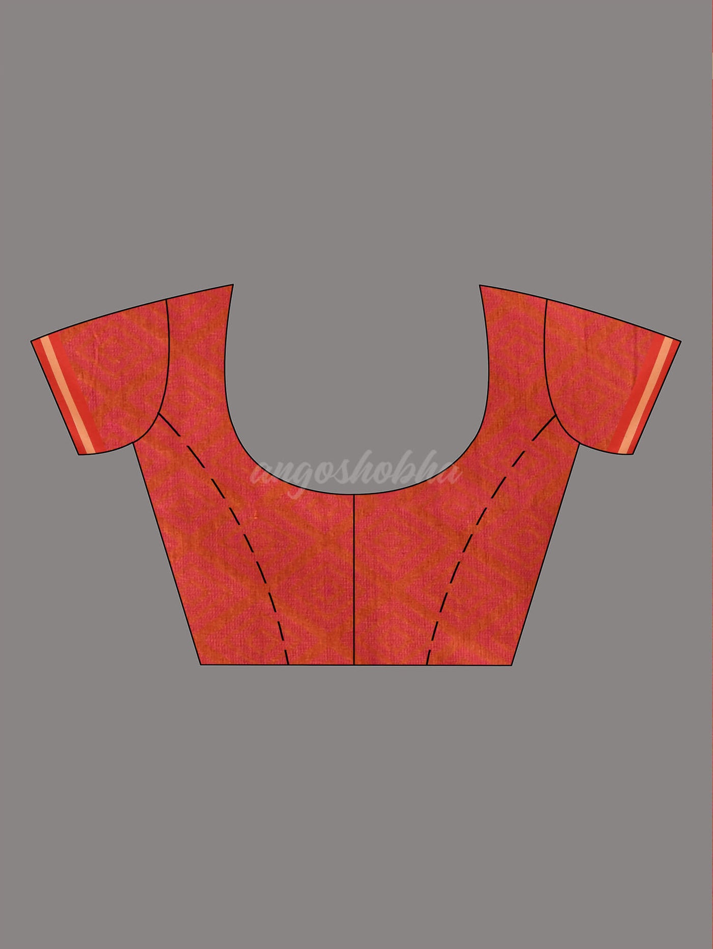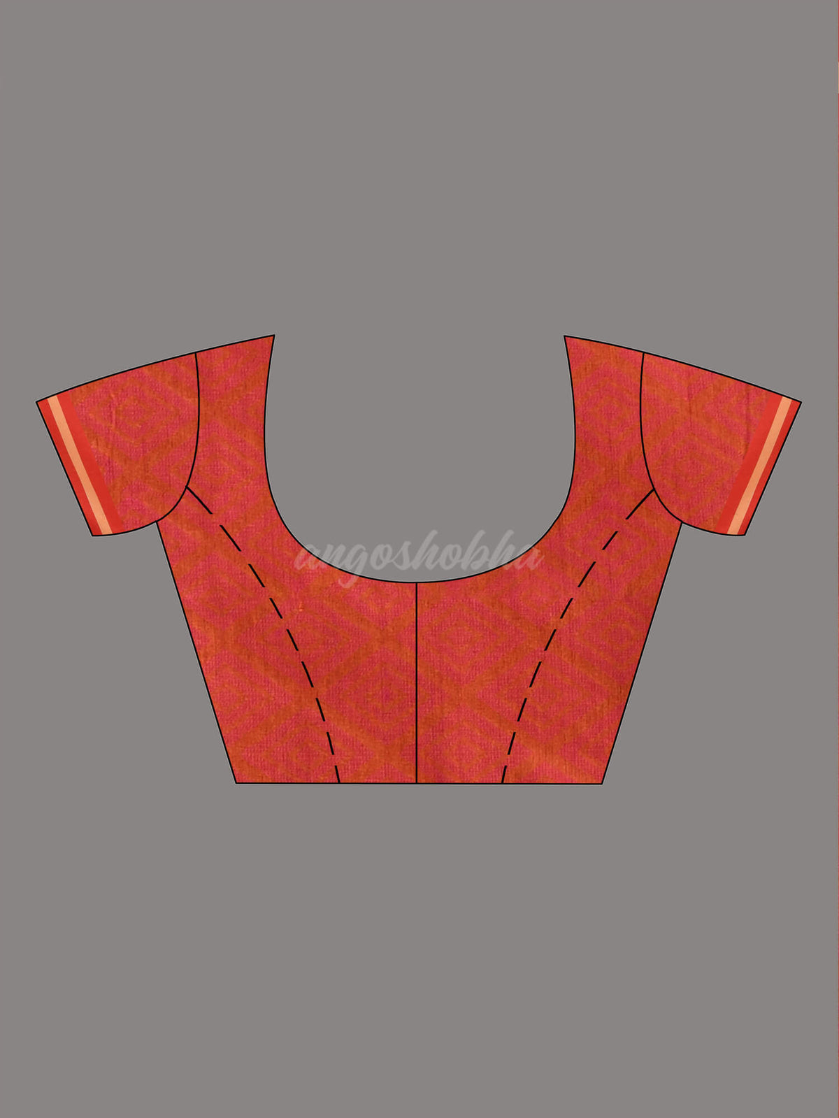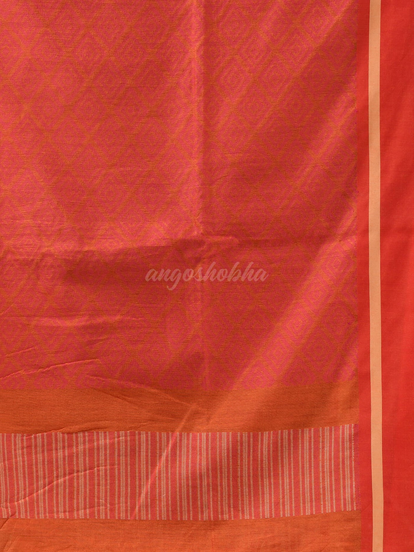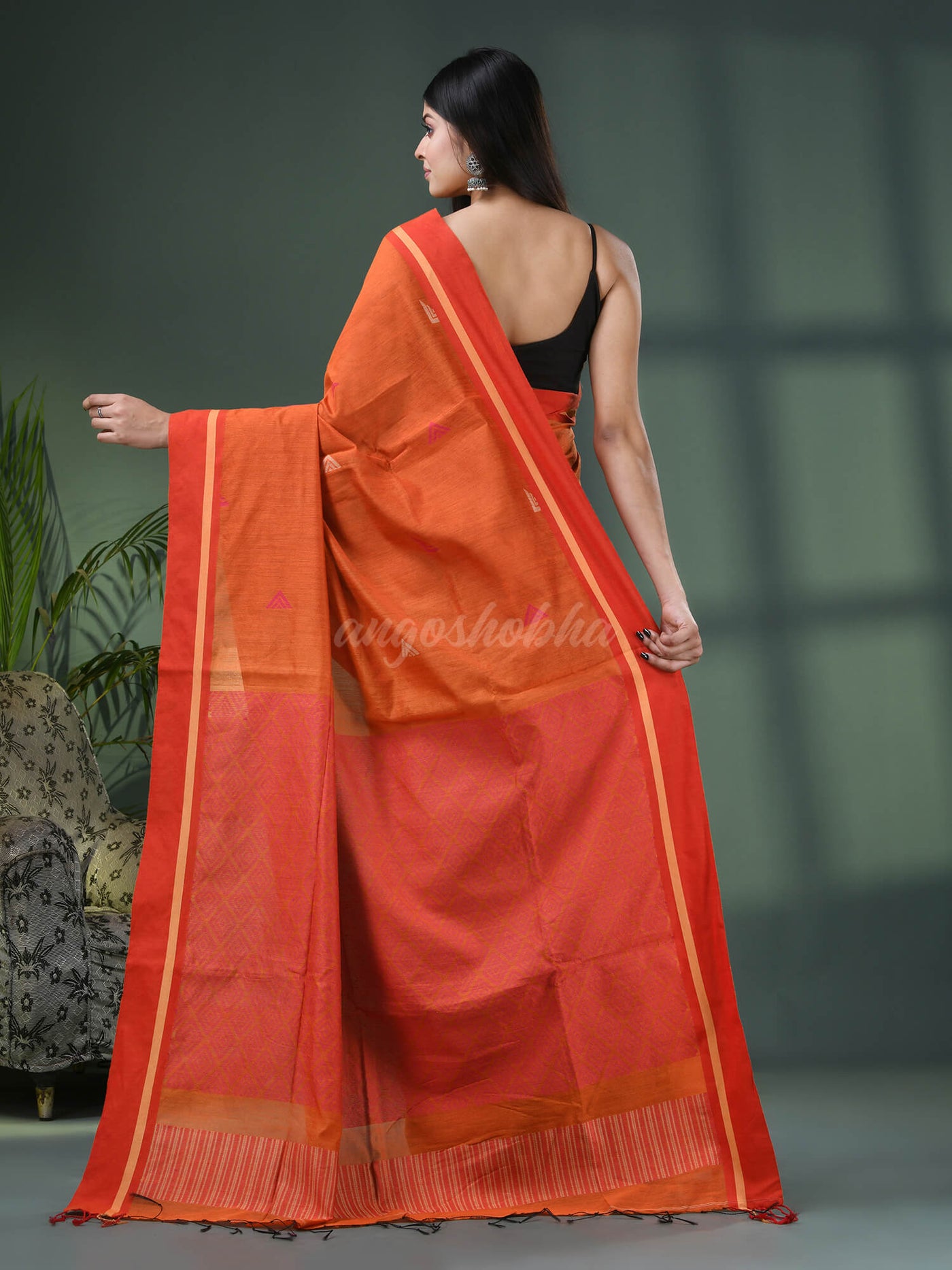 Orange Cotton Blend Jacquard Work Handloom Saree
