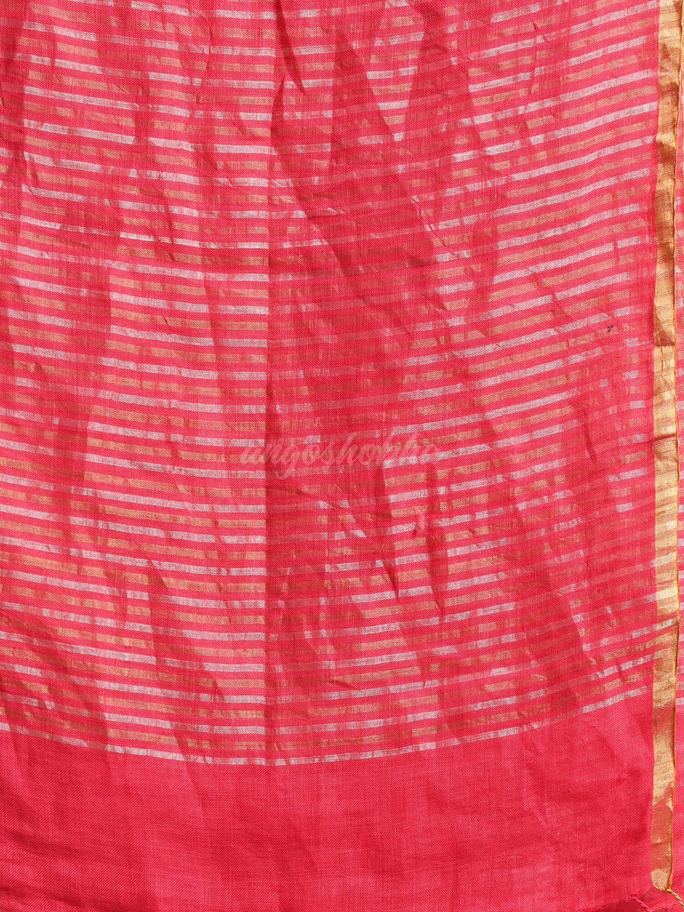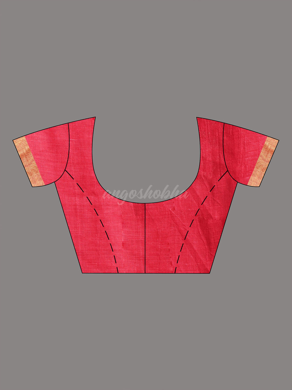Description: Accentuate your ethnic ensemble by wearing this saree from Angoshobha. Sarees have their own grace, specially this one. This saree from Angoshobha is a beautifu Fuchsia Pink Colour zari linen Tissue Handwoven Saree. The Saree All Body Solid.  With Golden Zari Colour Border.And Strip pallu.The Saree Comes With A Fuchsia Pink Colour Running Blouse piece attached. Crafted in a Linen Zari fabric, this beauty gives the most comfortable fit. Style of it with minimal jewellery and high heels to slay the ethnic look.You can wear anywhere and any festival moment with wonderful enjoyment.So collect this product and enjoy with wearing Linen Zari Tissue saree. Obviously you can trust on this collection. We are always with your fashion and choice.
