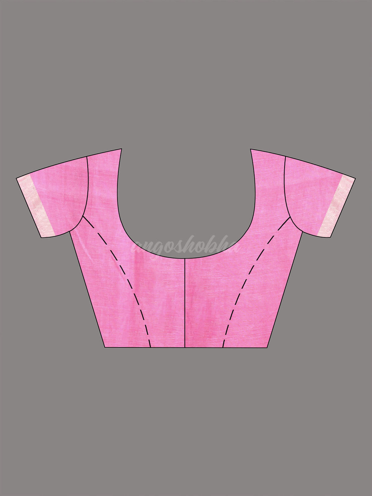 Description: Angoshobha ethnic saree comes with an attached blouse piece according to your taste and preference. It is consumed  silver Zari border.This Pink saree is crafted by Linen Zari craftsmen using high quality linen Zari fabric without compromising on its quality. Saree is very comfortable in summer and suitable for festivals this saree and blouse set will fetch you Oodles of compliments and praises. Colour hues may slightly vary from that which appears in the image