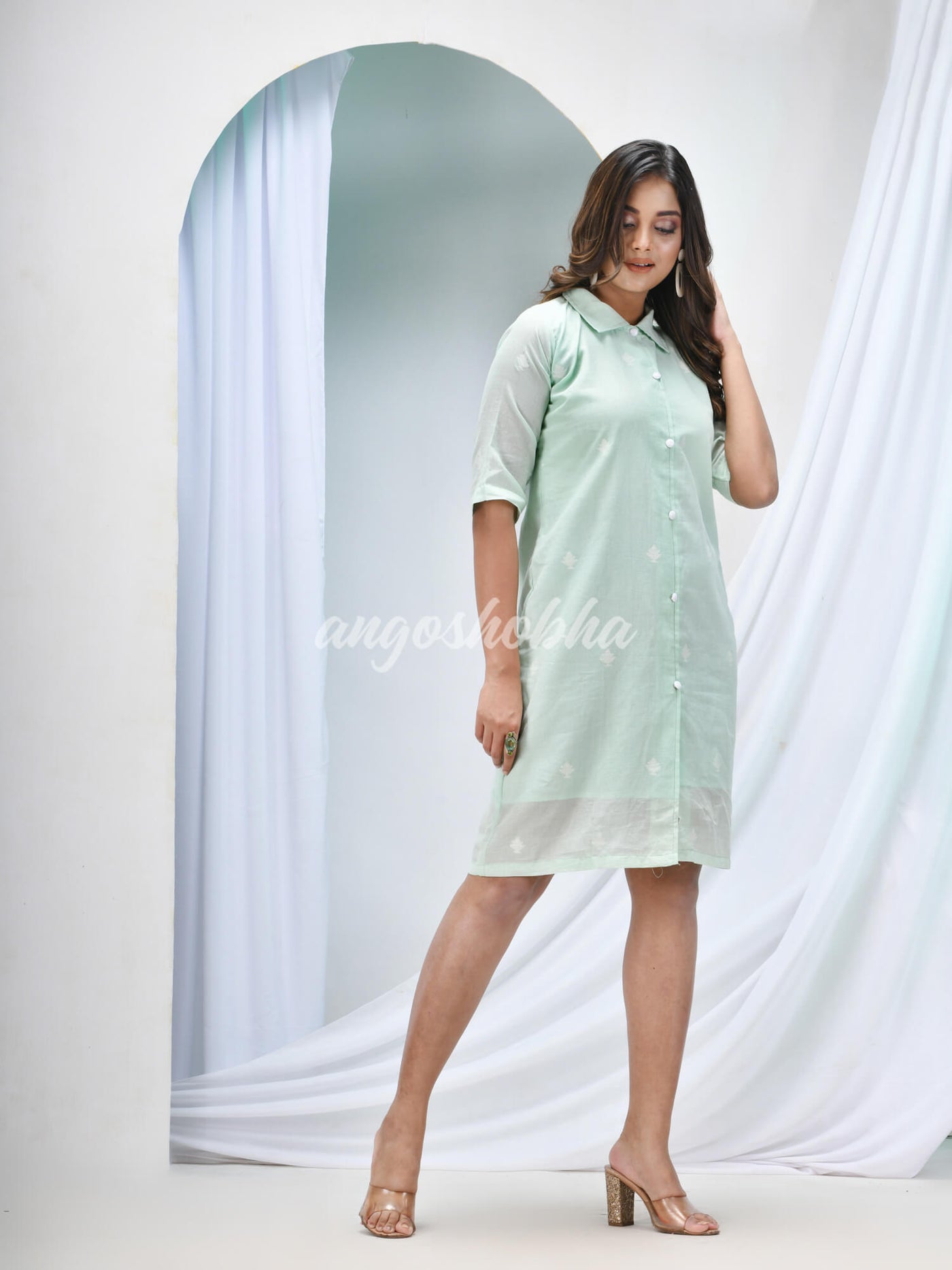 Pistachio Green Cotton Bengal Handwoven One Piece