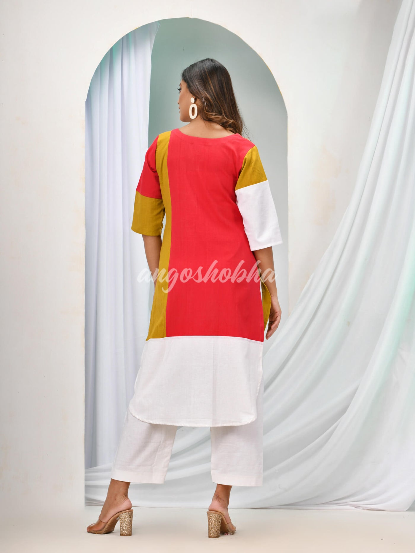 Multicolour Cotton Bengal Handwoven Kurta Set