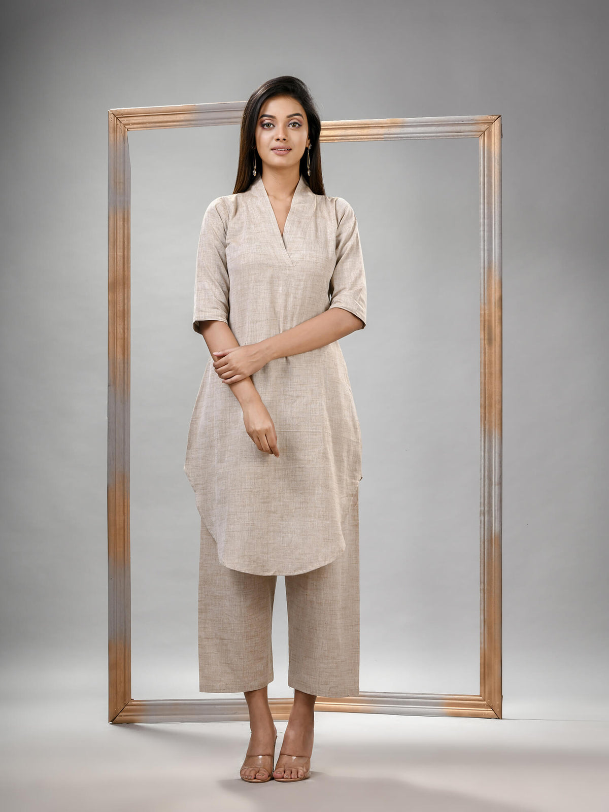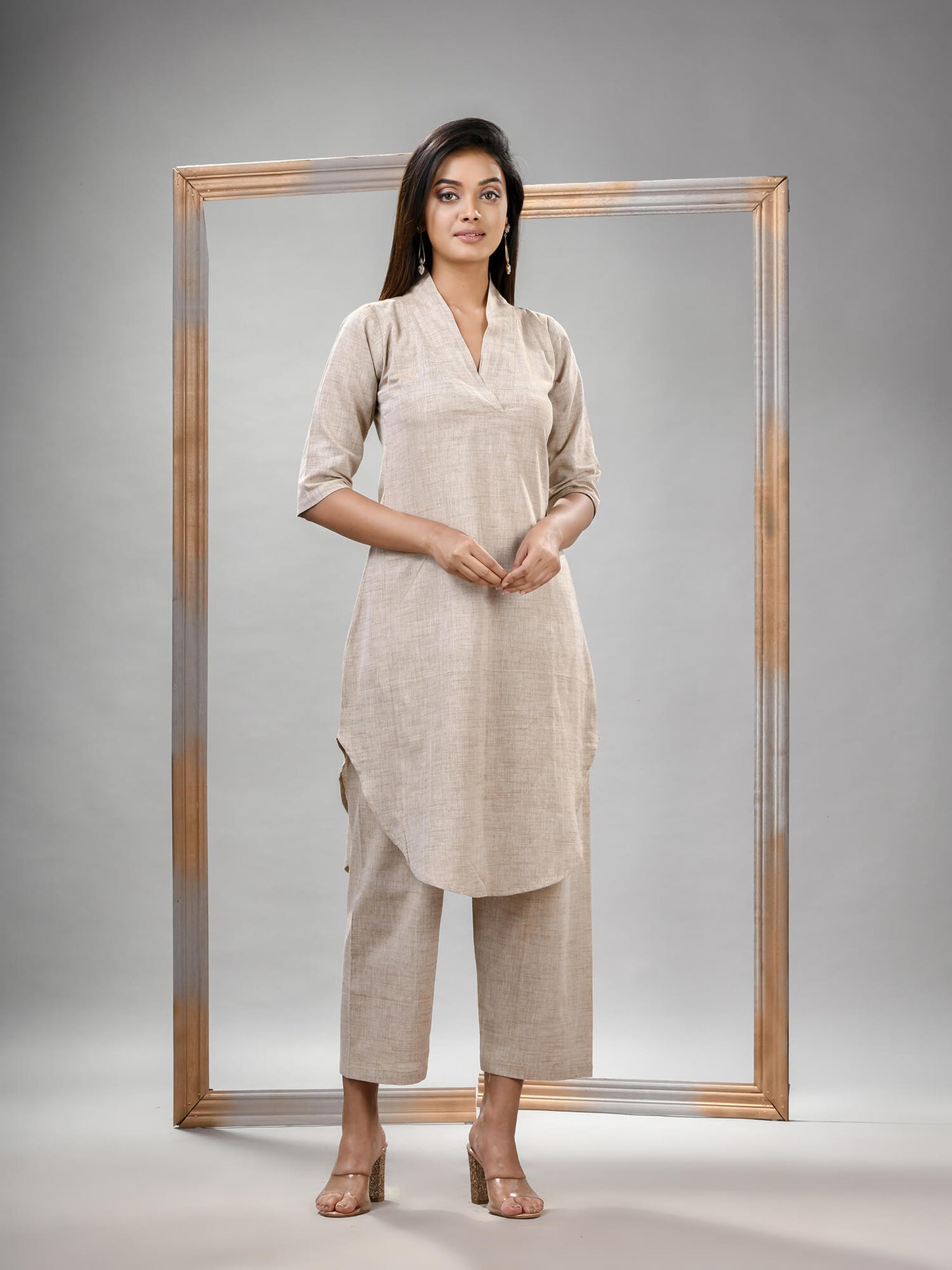 Silk Grey Cotton Bengal Handwoven Kurta Set