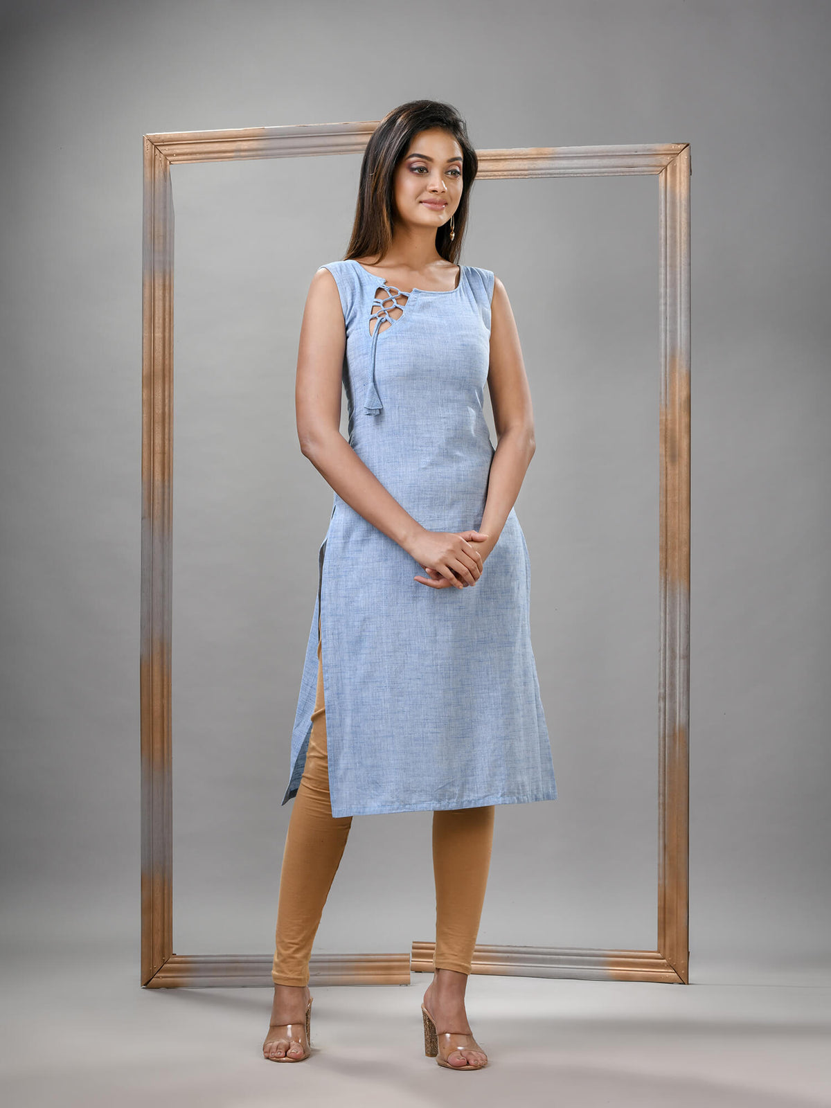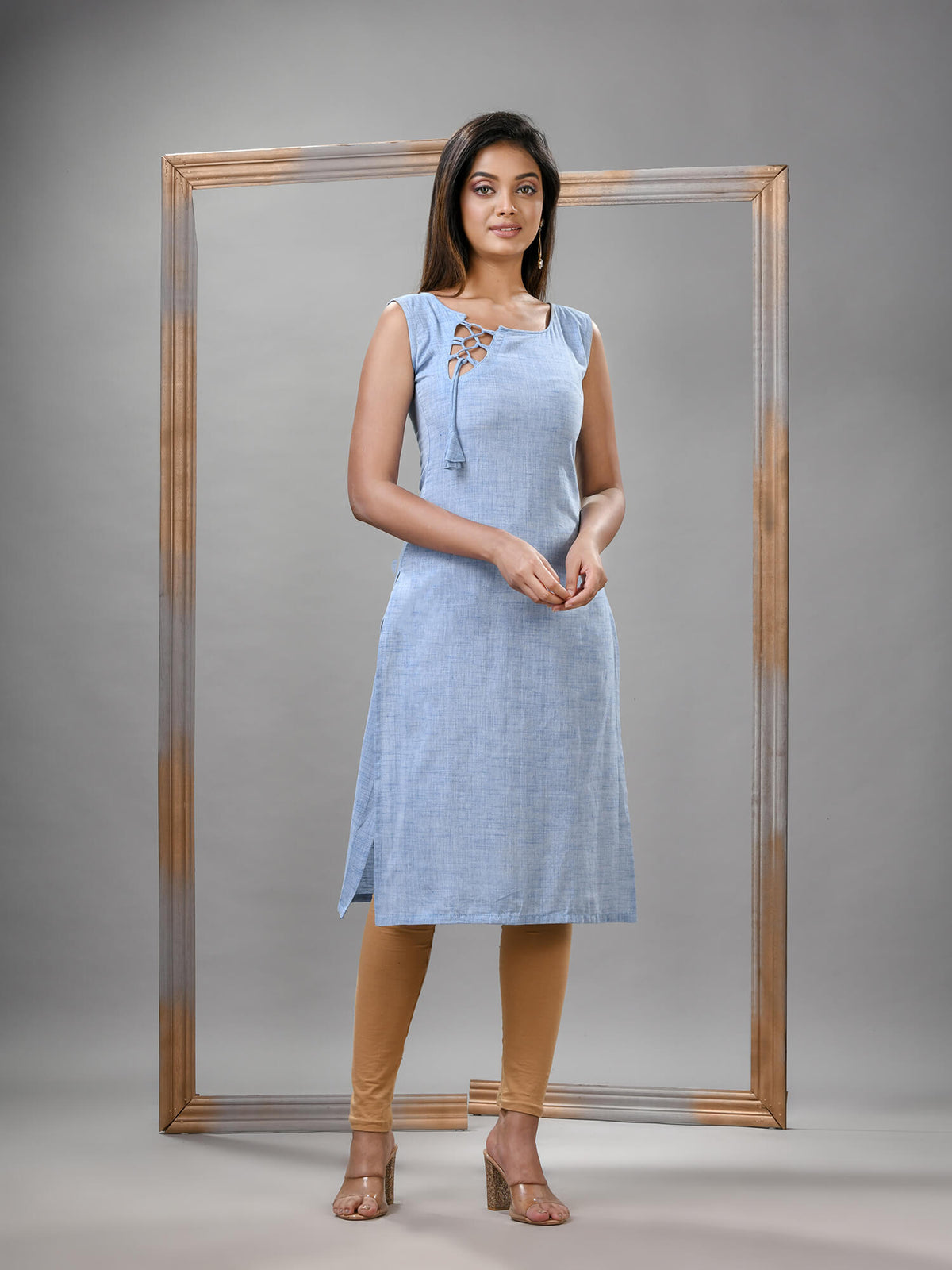 Cadet Blue Cotton Bengal Handwoven Kurti