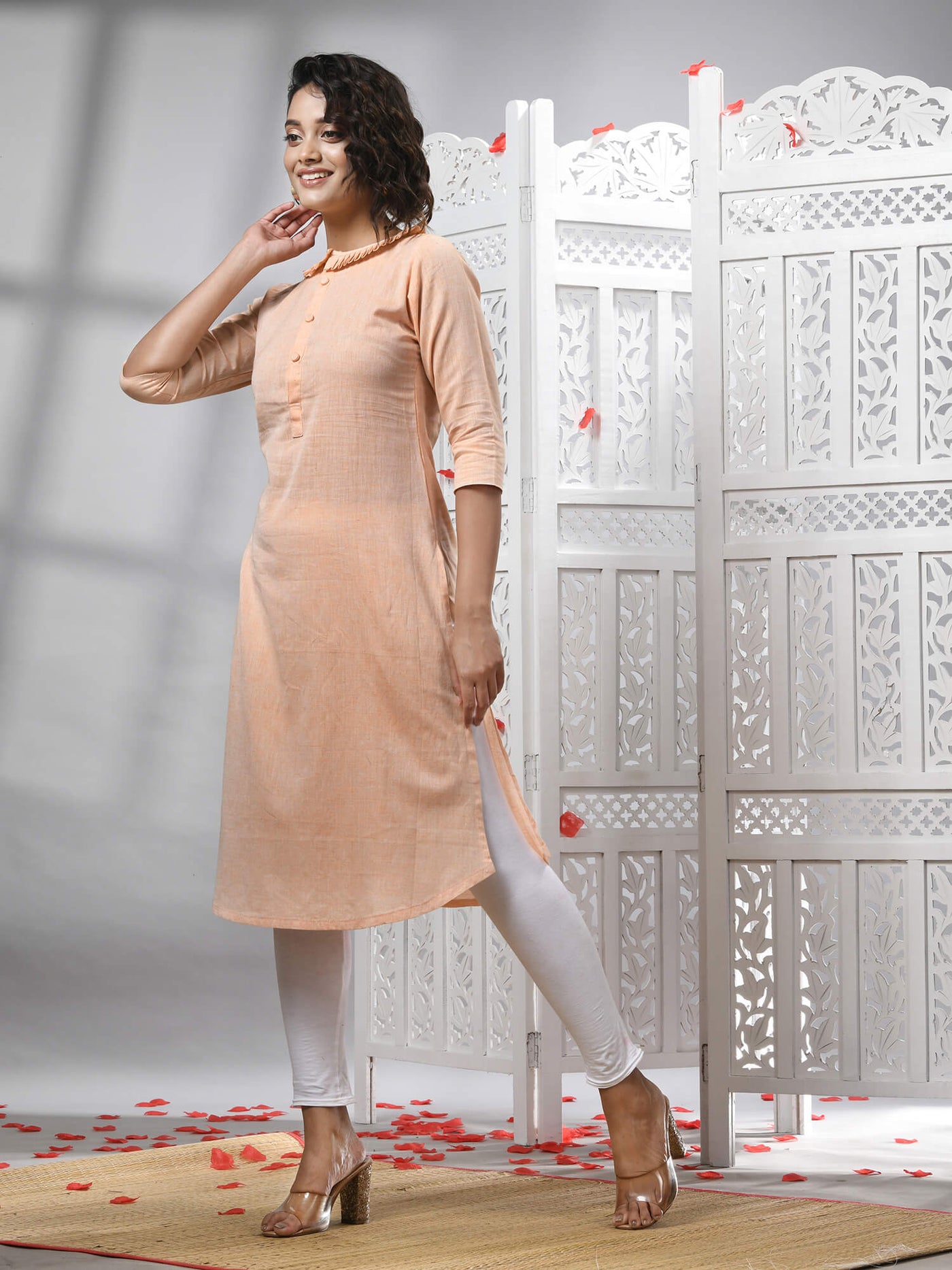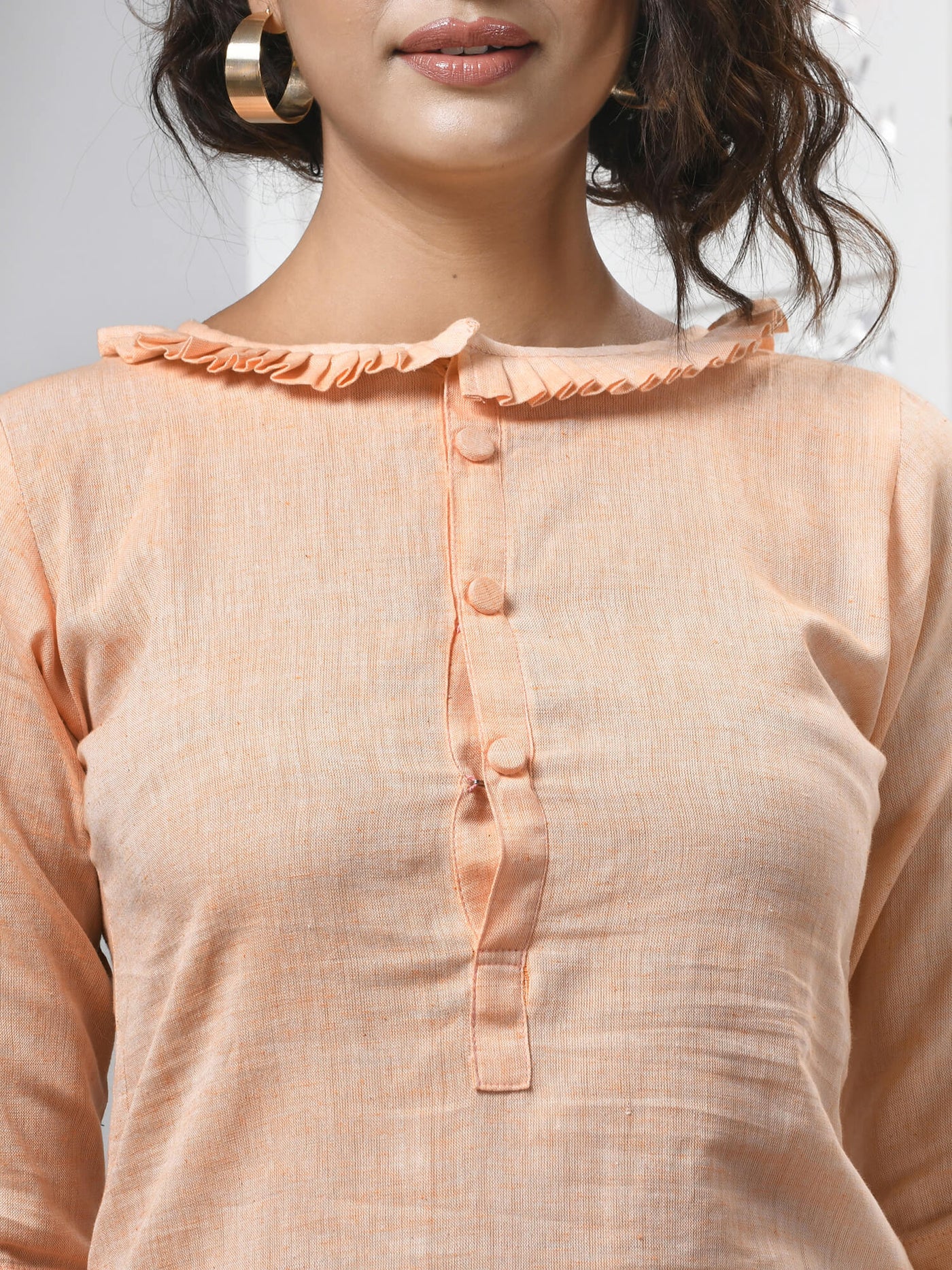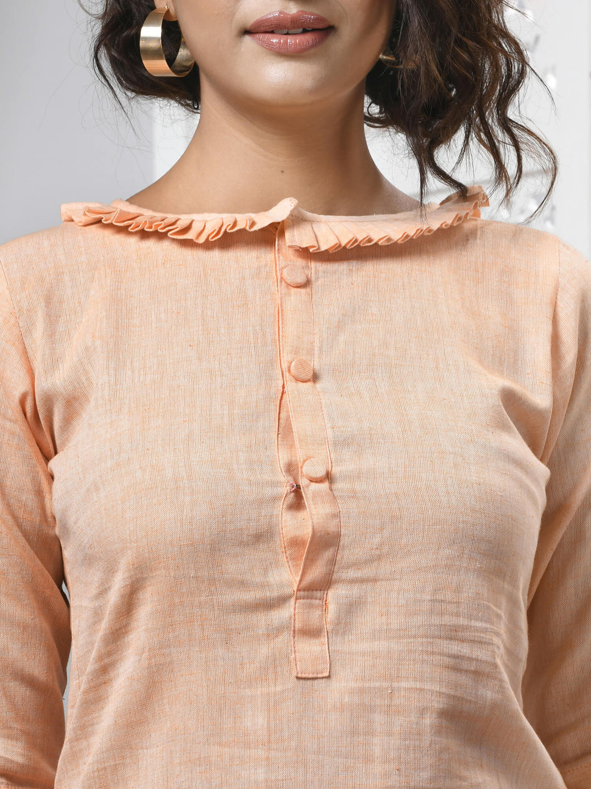 Peach Cotton Bengal Handwoven Kurti