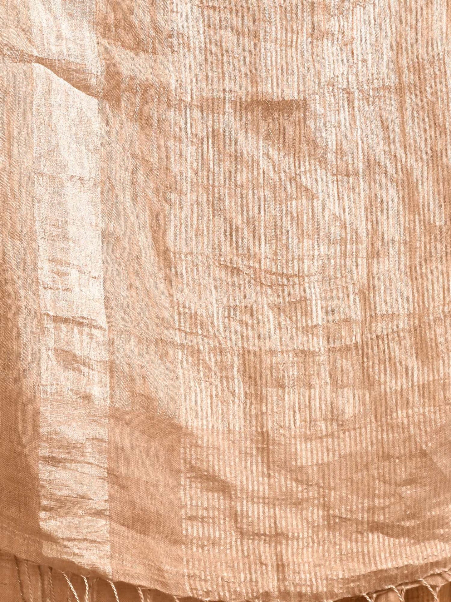 Beige Linen All Body Silver Zari Stripe Handwoven Saree