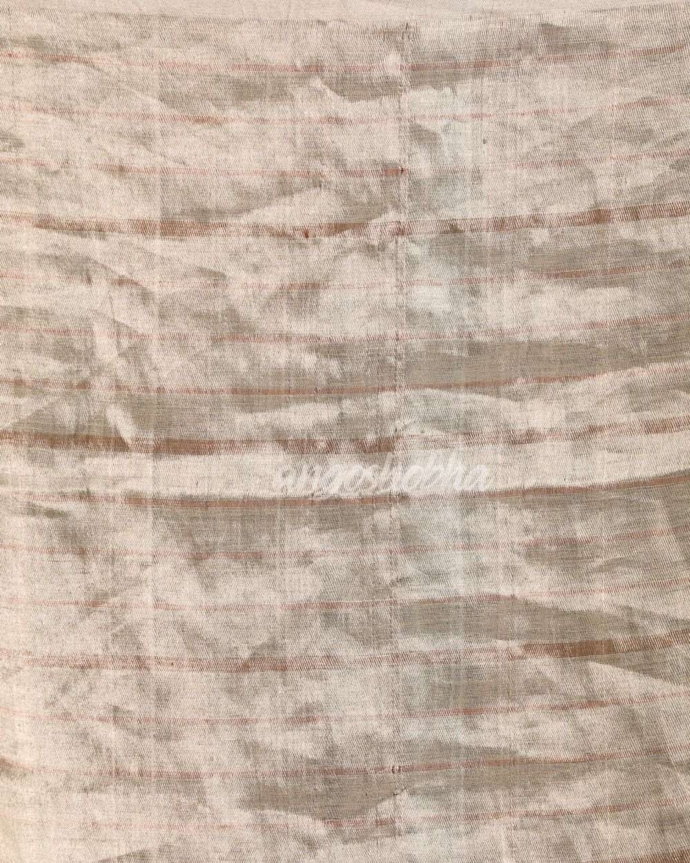 Beige Silver Traditional Handloom Check Linen Saree