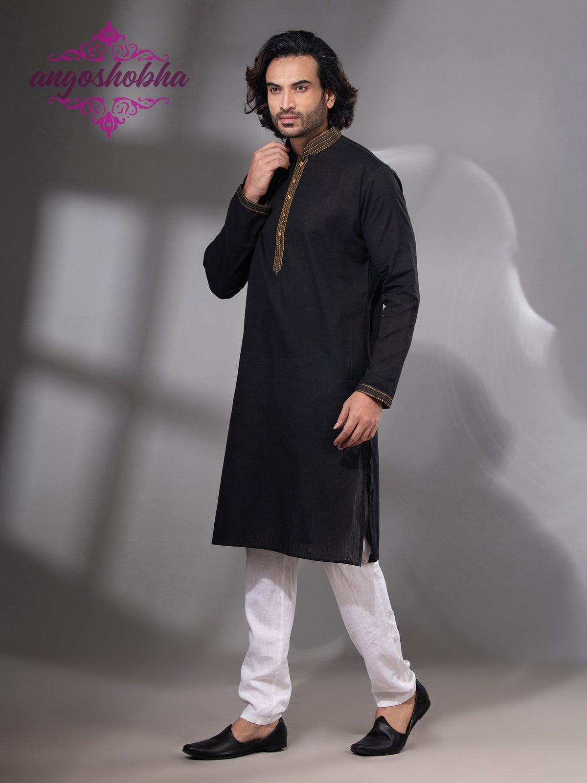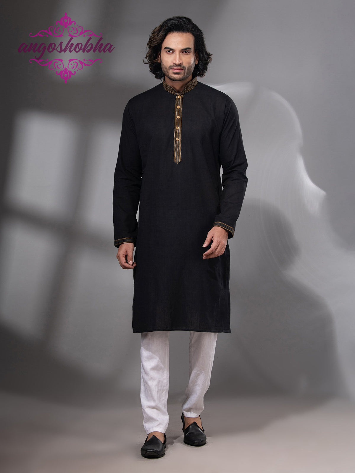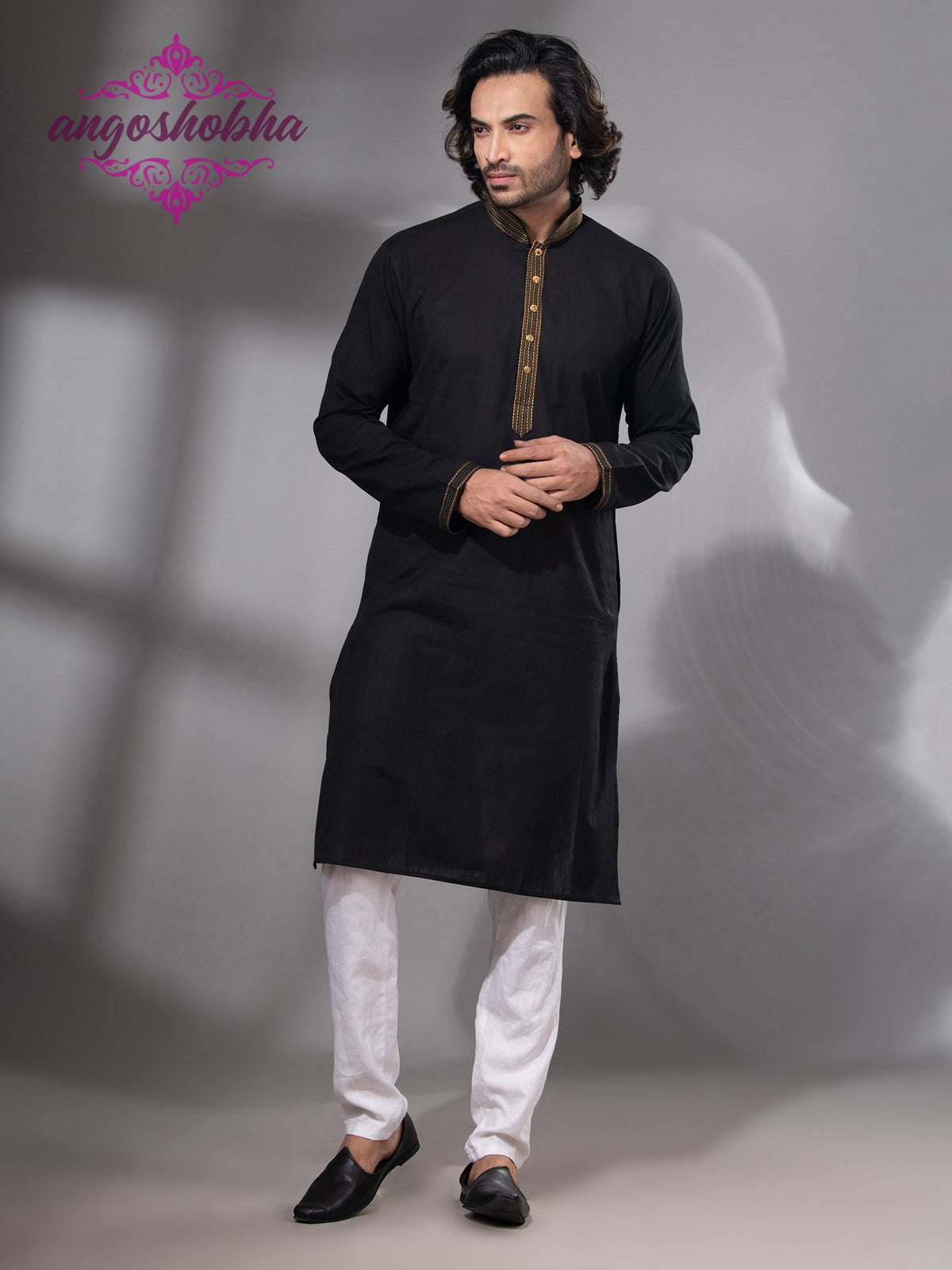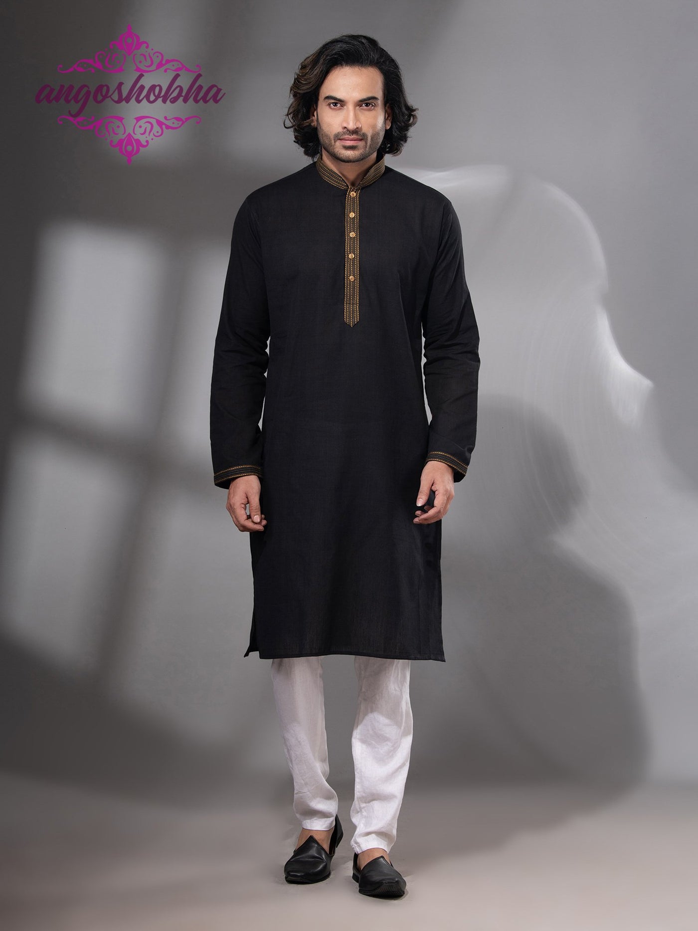 Black Cotton Men's Punjabi