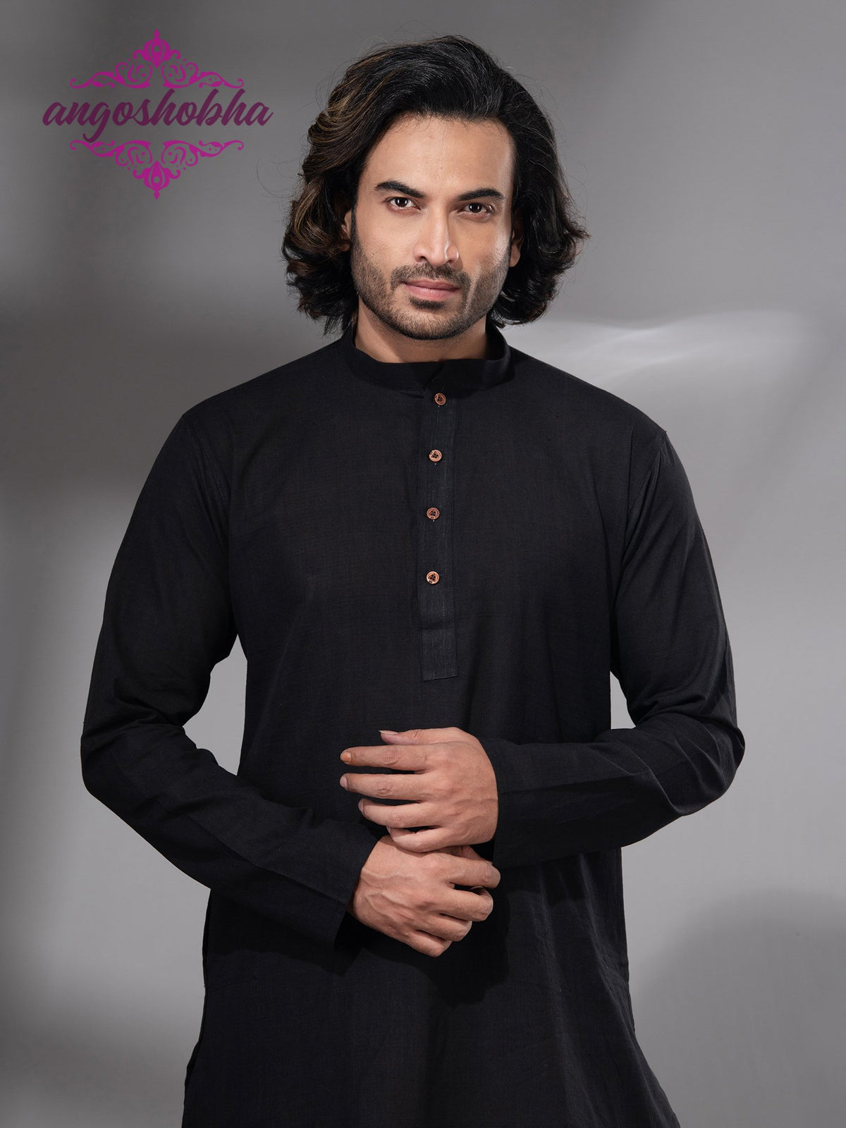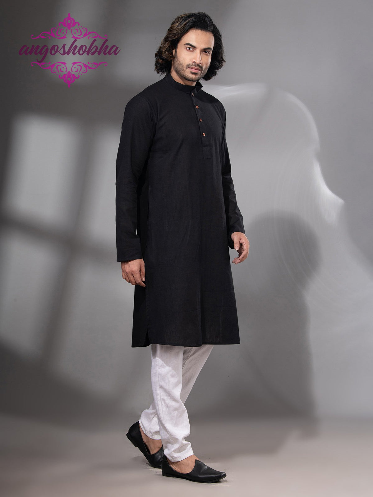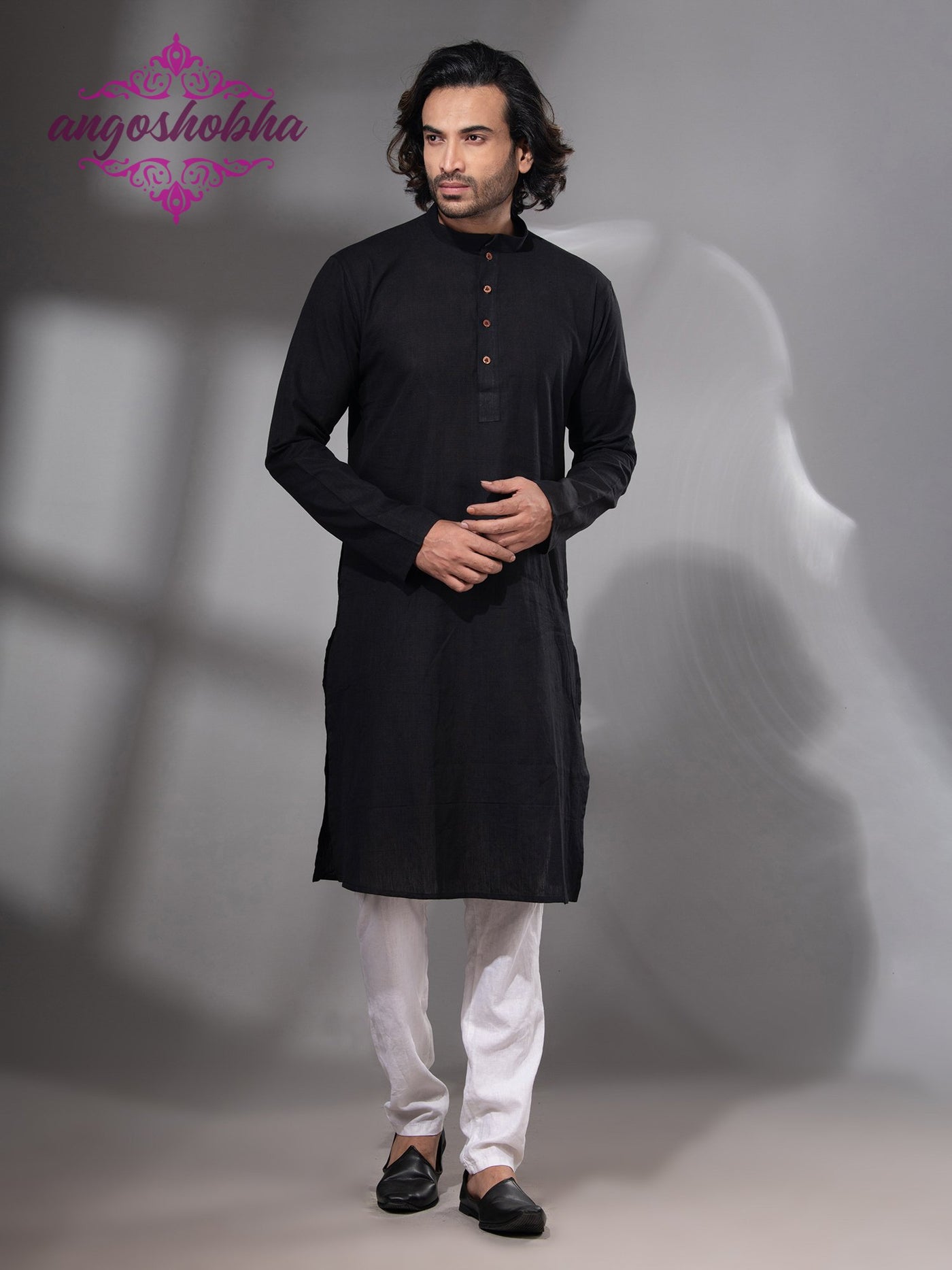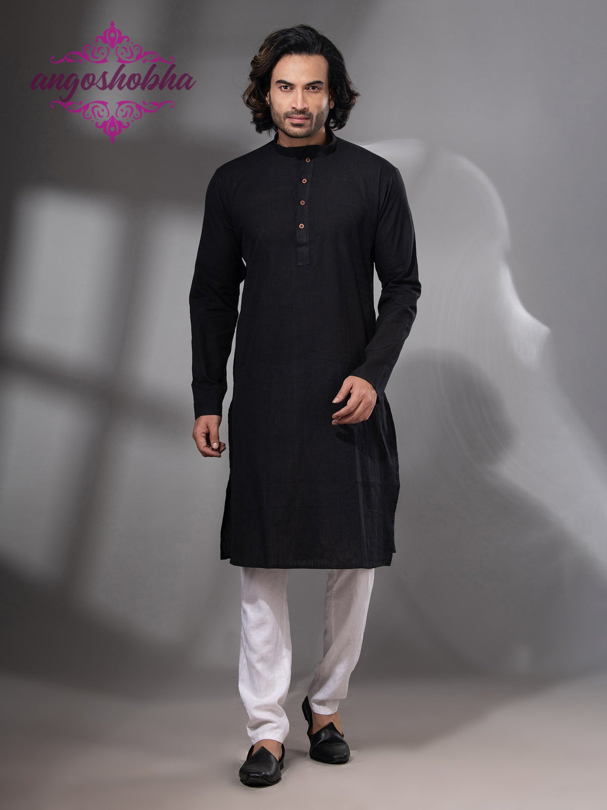 Black Cotton Men's Punjabi