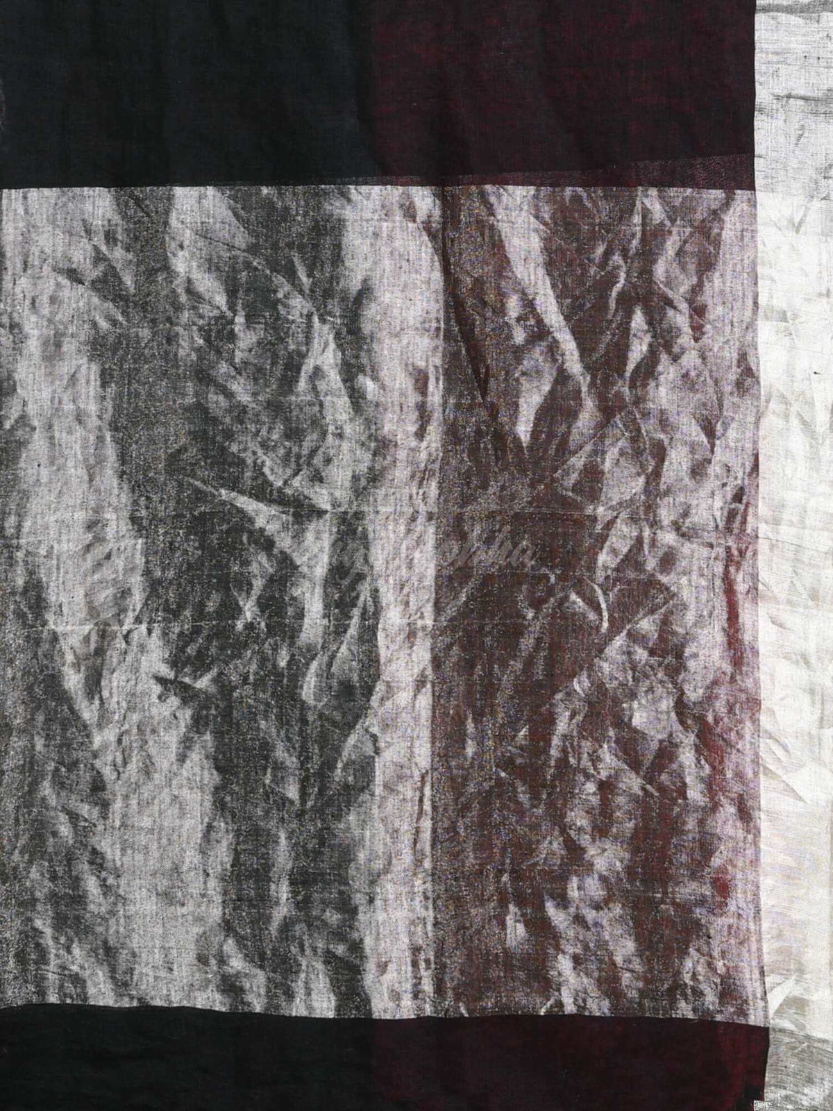 Description: Angoshobha’s ethnic saree comes with an unstitched blouse piece, which can be stitched according to your taste and preference.The border of the saree is made silver colour and fabric is linen. The half 0f the saree is black and half is Maroon colour with solid body.with pallu Silver zari Colour stipe.Style this saree with a pair of embellished heels and statement accessories to complete the look. Buy this saree  through online.