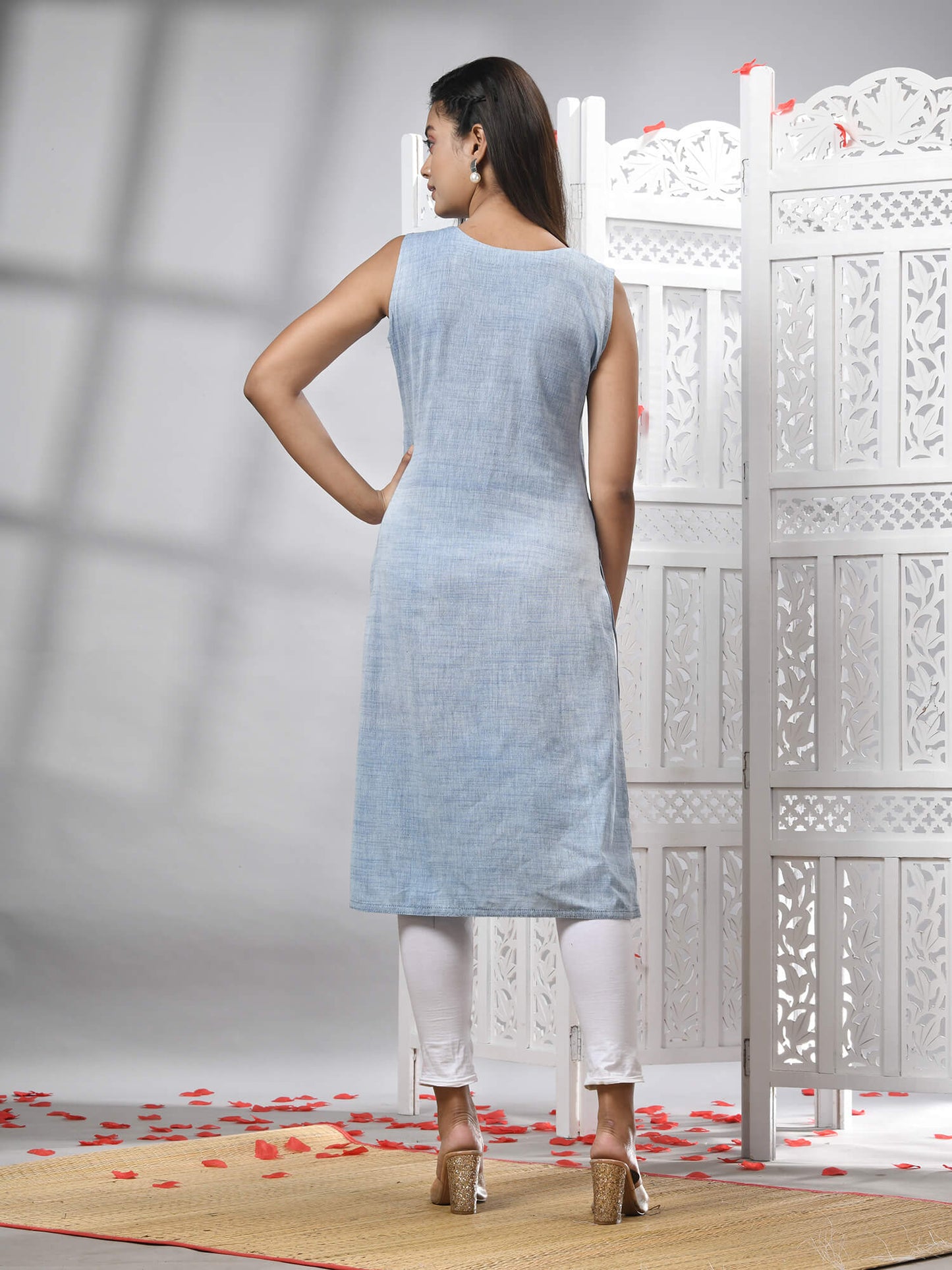 Cadet Blue Cotton Bengal Handwoven Kurti